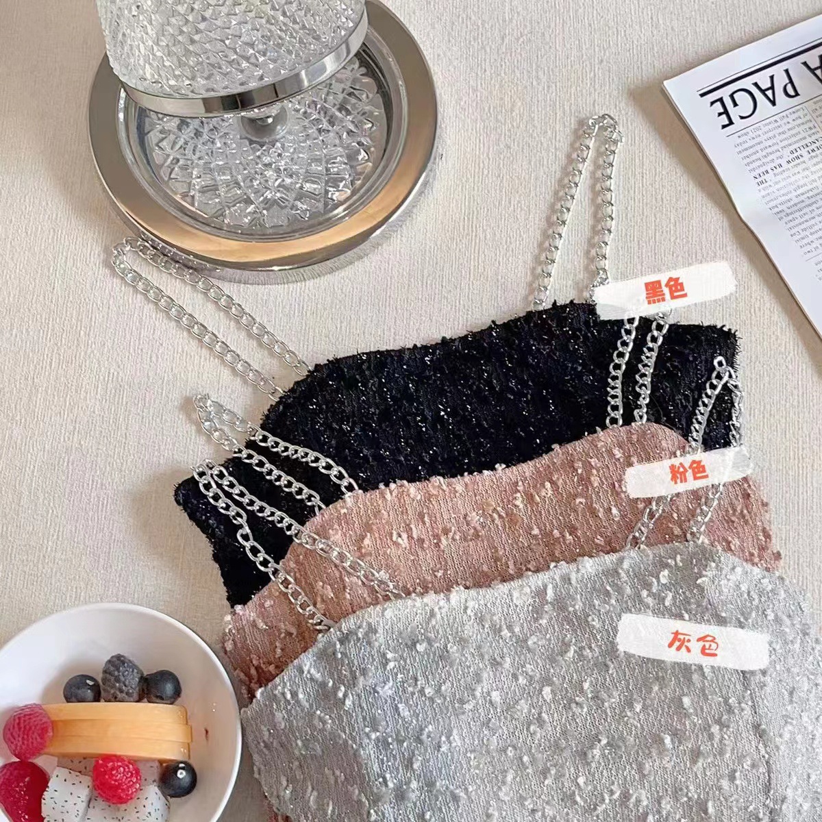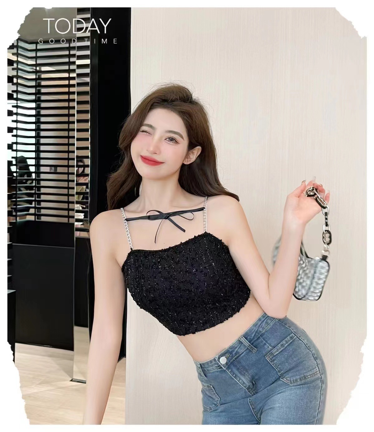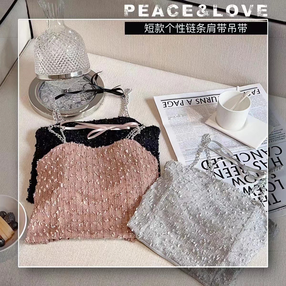 트렌디 한 멋진 패션 체인 어깨 스트랩 섹시 카미 솔 여성의 짧은 스파이스 소녀 스타일 내부 입고 가슴을 감싸는 아름다운 뒷면스토어 가기