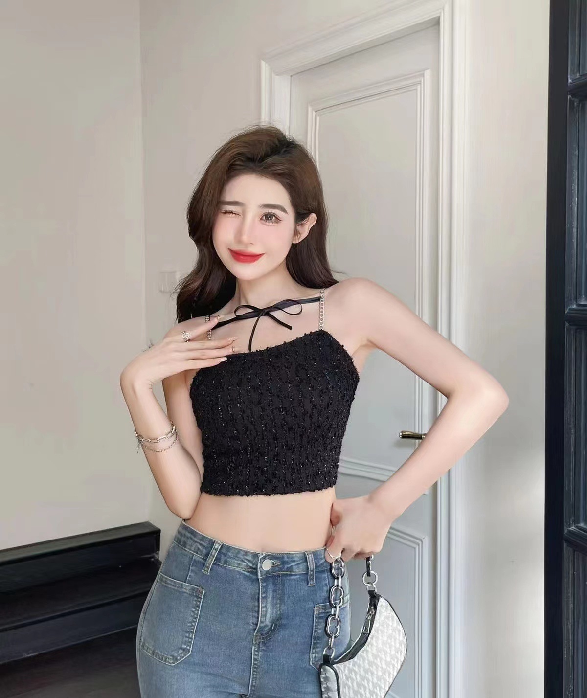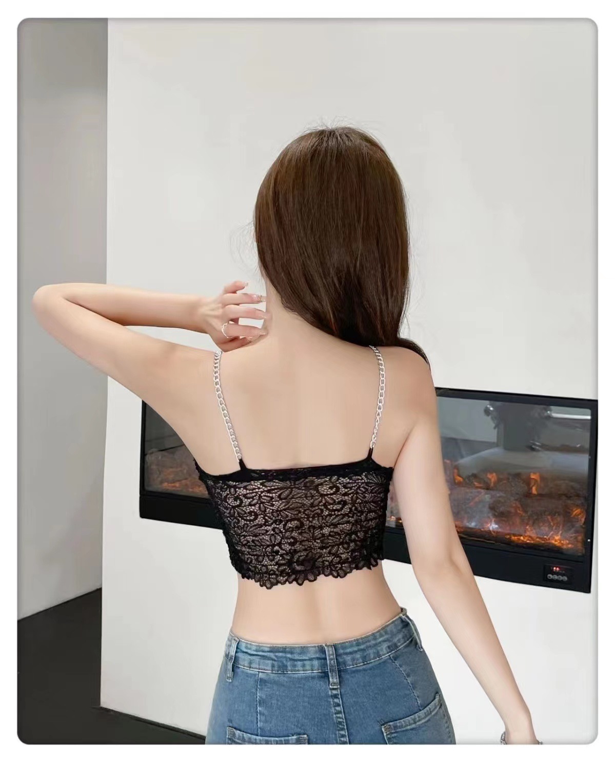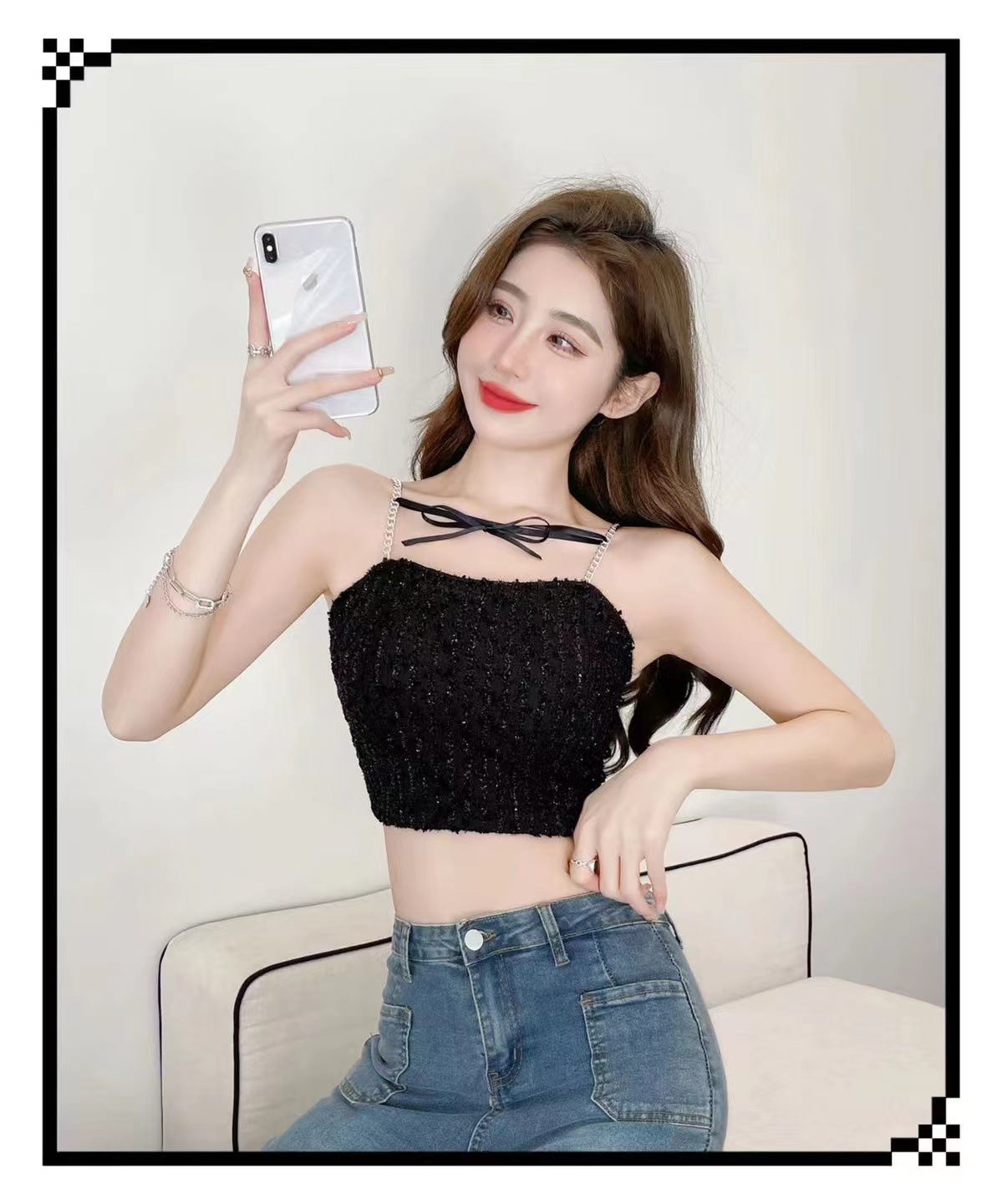 트렌디 한 멋진 패션 체인 어깨 스트랩 섹시 카미 솔 여성의 짧은 스파이스 소녀 스타일 내부 입고 가슴을 감싸는 아름다운 뒷면스토어 가기