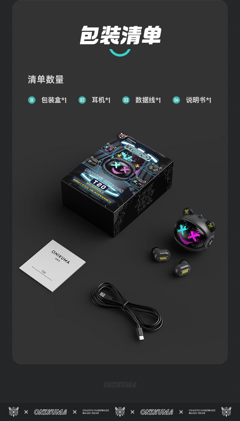 ONIKUMA T20 진정한 무선 블루투스 헤드셋 새로운 TWS 소음 감소 높은 음질 5.3 E 스포츠 인 이어스토어 가기