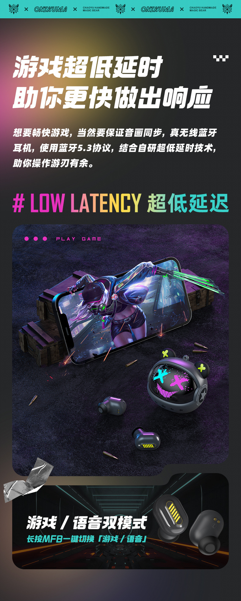 ONIKUMA T20 진정한 무선 블루투스 헤드셋 새로운 TWS 소음 감소 높은 음질 5.3 E 스포츠 인 이어