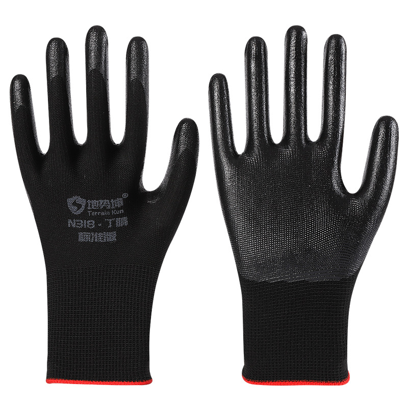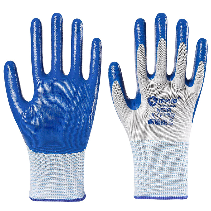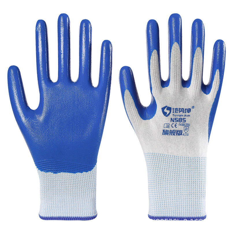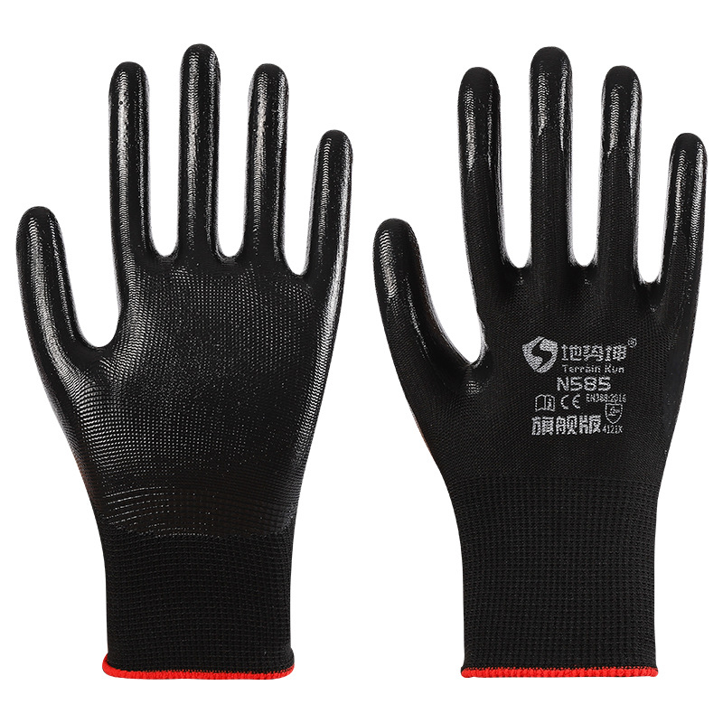 Geo Kun N585 도매 노동 장갑 내마모성 니트릴 담근 고무 Ding Qing 라텍스 미끄럼 방지 현장 작업 고무스토어 가기