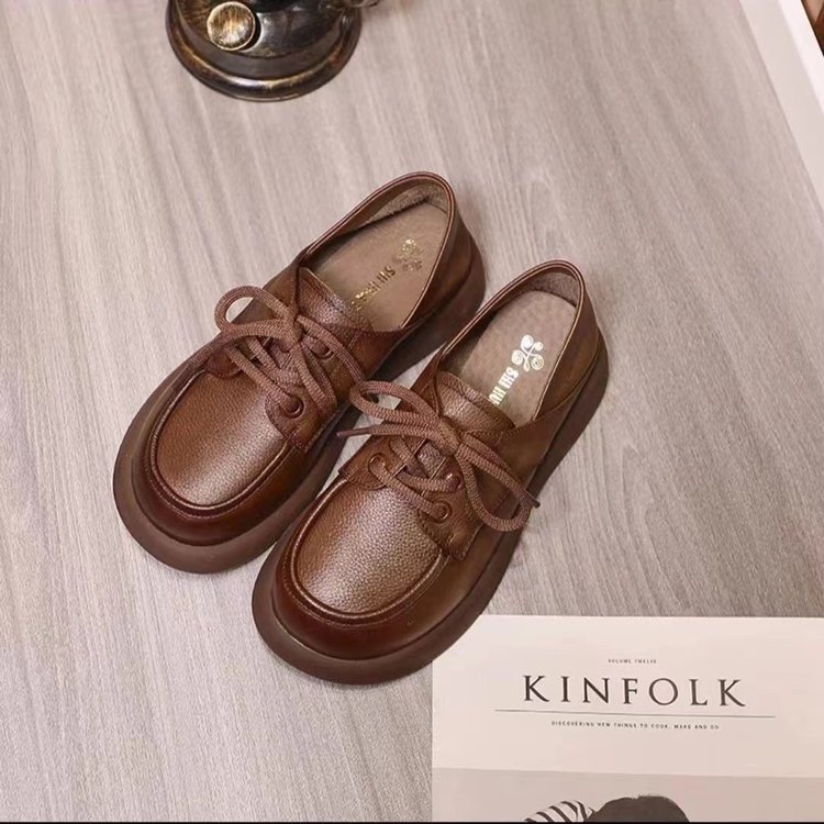 봄 가죽 소프트 단독 부드러운 표면 작은 가죽 신발 여성 영국 스타일 싱글 레이어 신발 모든 경기 유행 편평한 편안한 작업 신발스토어 가기