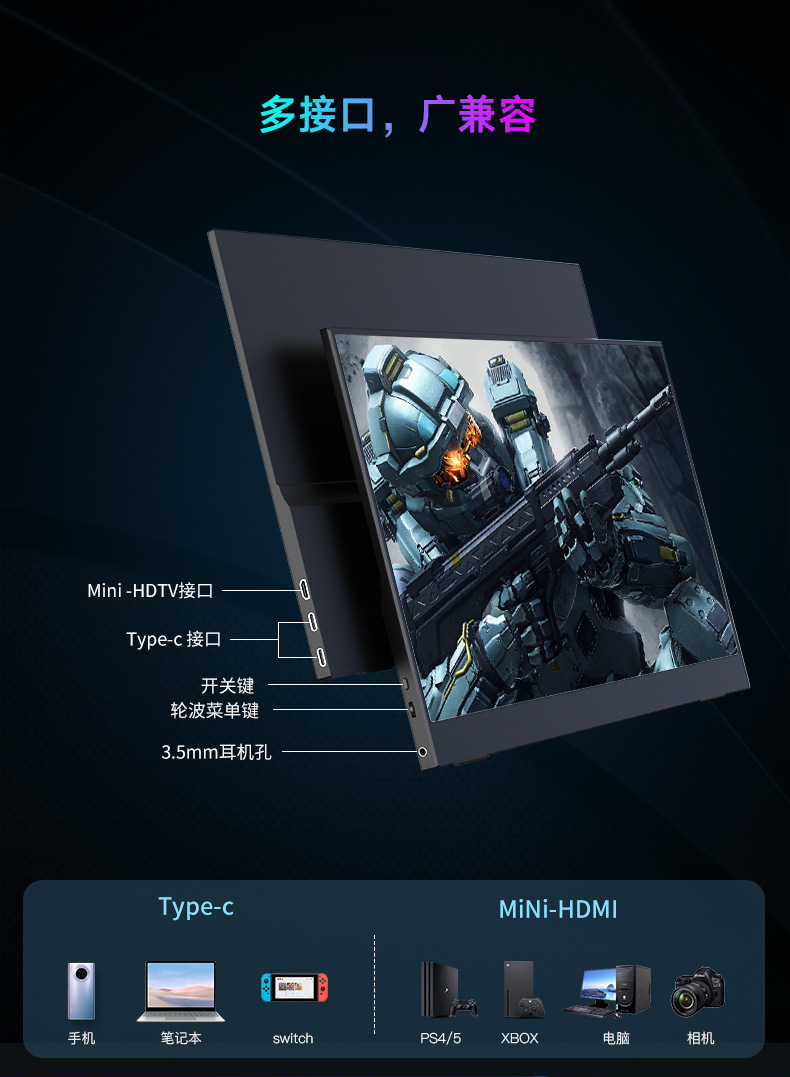 Baoyang 오리지널 맞춤형 15.6인치 2K 휴대용 디스플레이 100% sRGB e-스포츠 게임 144Hz 하이 브러시 휴대용 기기스토어 가기