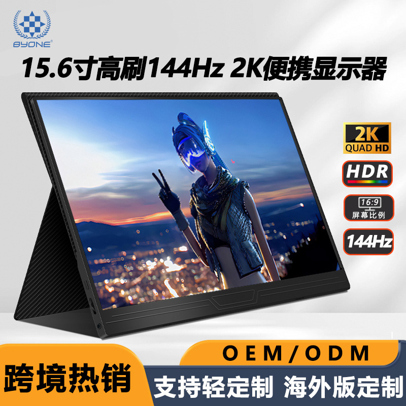 Baoyang 오리지널 맞춤형 15.6인치 2K 휴대용 디스플레이 100% sRGB e-스포츠 게임 144Hz 하이 브러시 휴대용 기기