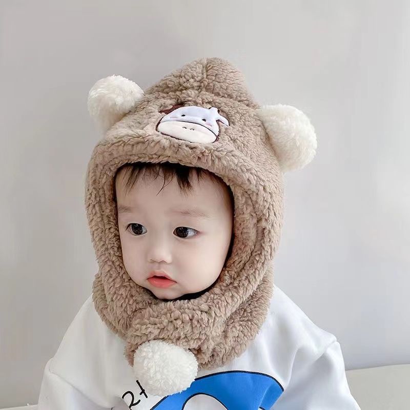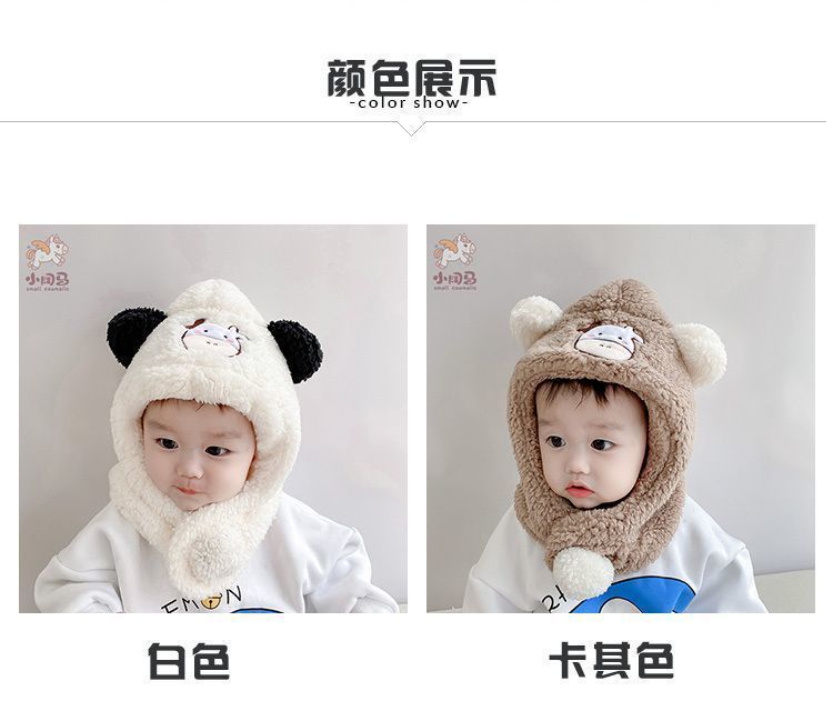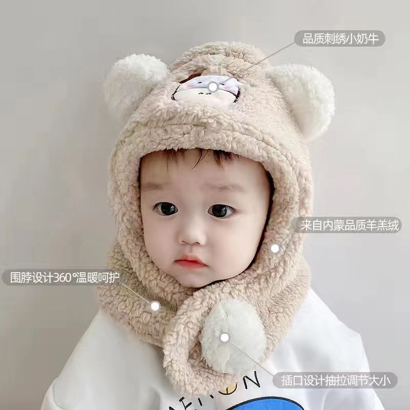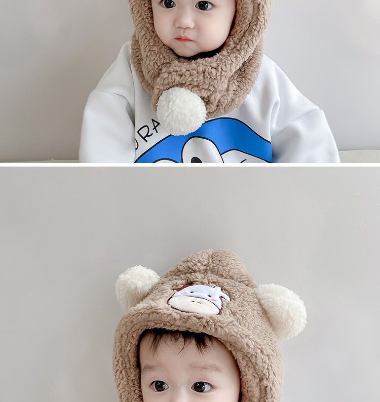아기 모자와 스카프 통합 가을과 겨울 귀여운 슈퍼 귀여운 소년 아기 모자 봉제 귀 보호 모자 기모 겨울