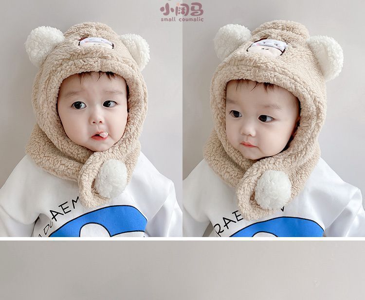 아기 모자와 스카프 통합 가을과 겨울 귀여운 슈퍼 귀여운 소년 아기 모자 봉제 귀 보호 모자 기모 겨울스토어 가기