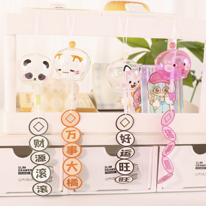 Meng 애완 동물 쌍 바람 벨 펜던트-유리 벨 창조적 인 침실 펜던트 명상 여름 바람 교수형 문 장식