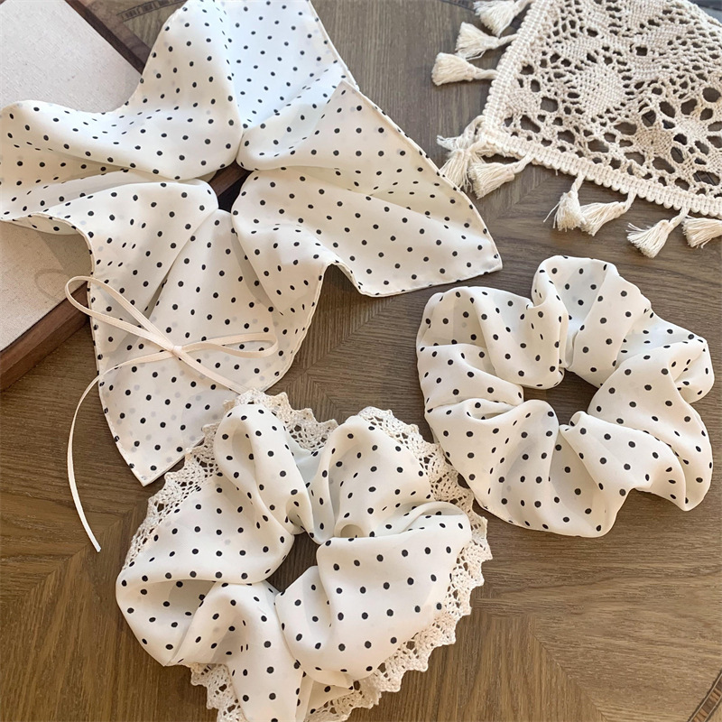 스퀘어 스카프 헤어 링 설문 조사 활 리본 여성 낮은 포니 테일 대형 그릇 레이스 헤어 로프 올 매치 헤어 액세서리