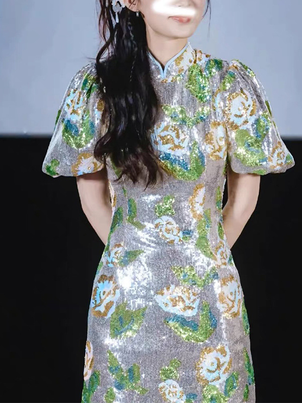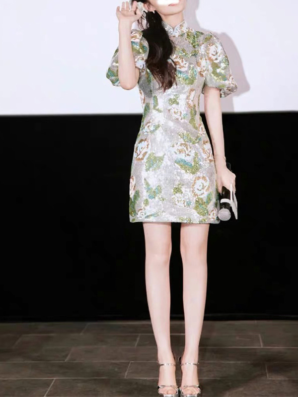 리신 동일 스타일 옷 버블 슬리브 슬림 핏 엉덩이 원피스 원피스 여성 여름 스퀸 고화질 새로운 중국 청삼