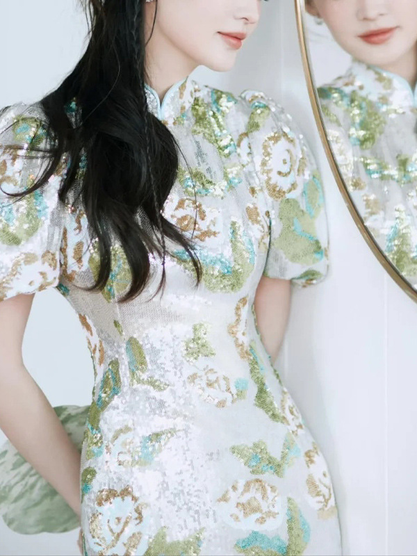 리신 동일 스타일 옷 버블 슬리브 슬림 핏 엉덩이 원피스 원피스 여성 여름 스퀸 고화질 새로운 중국 청삼스토어 가기