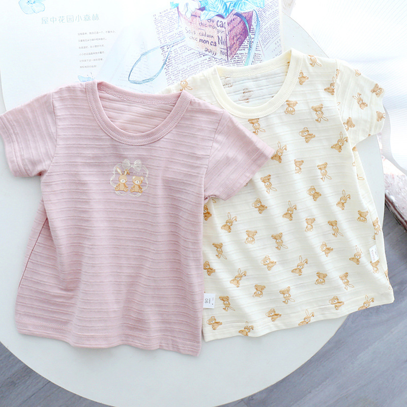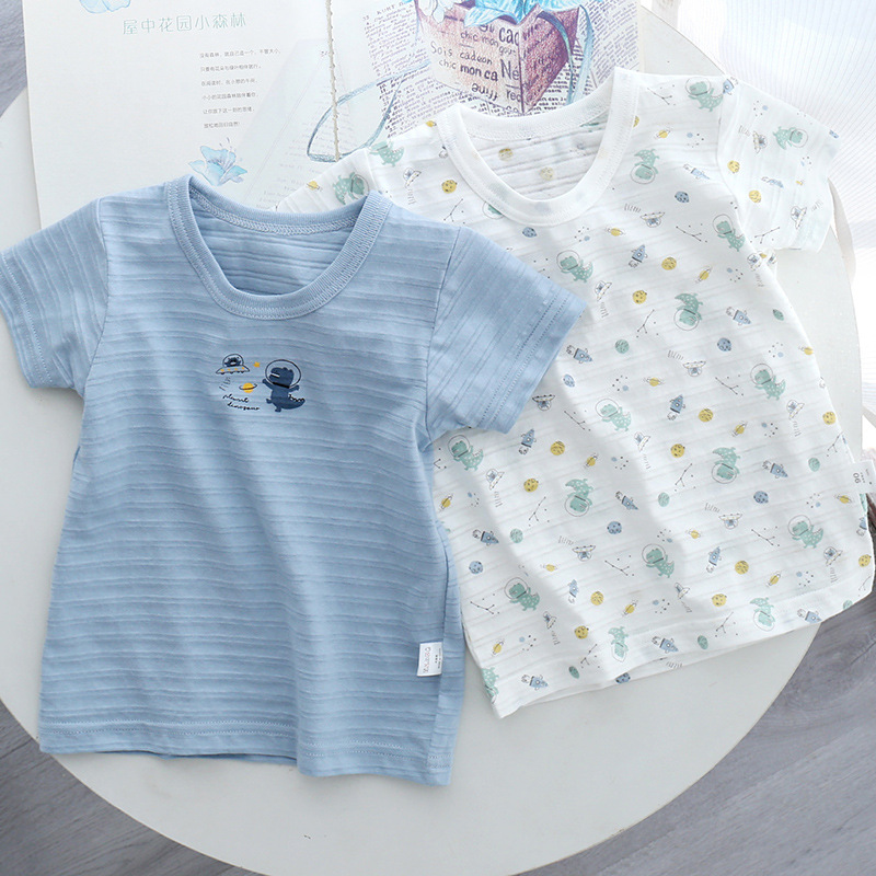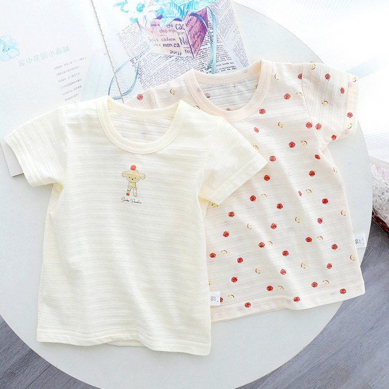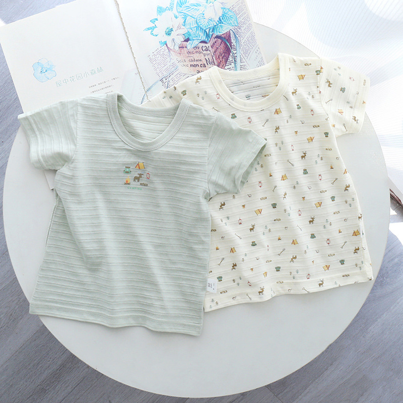 일본 여름 어린이 얇은 반소매 퓨어 코튼 클래스 A 슬럽 코튼 통기성 소년과 소녀 반소매 티셔츠 탑스토어 가기