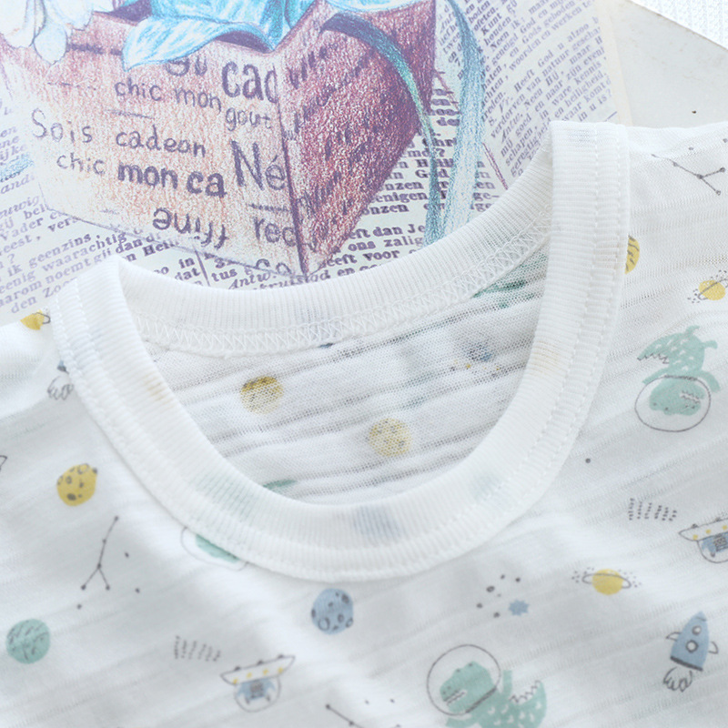 일본 여름 어린이 얇은 반소매 퓨어 코튼 클래스 A 슬럽 코튼 통기성 소년과 소녀 반소매 티셔츠 탑
