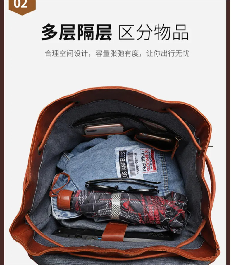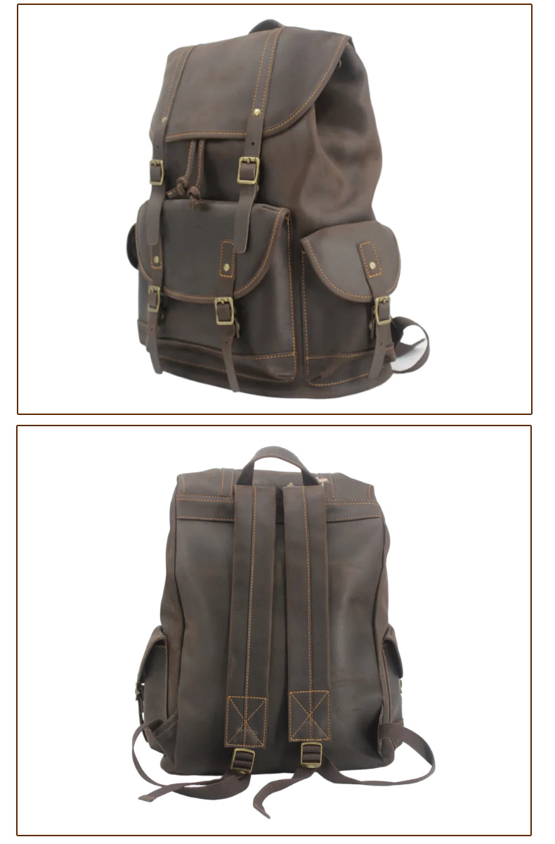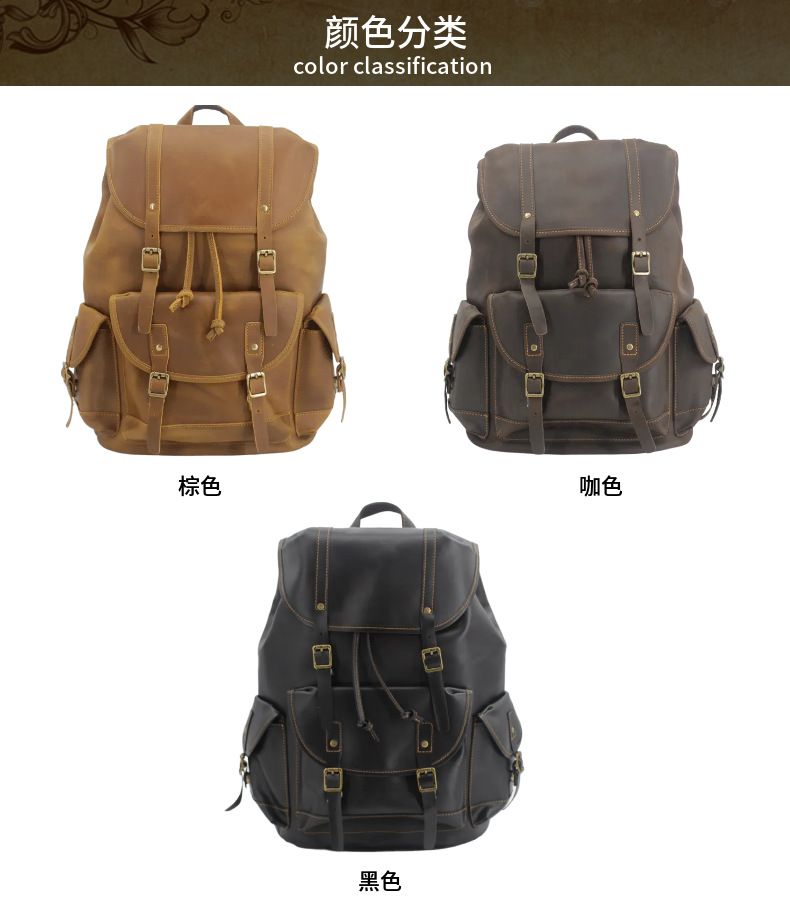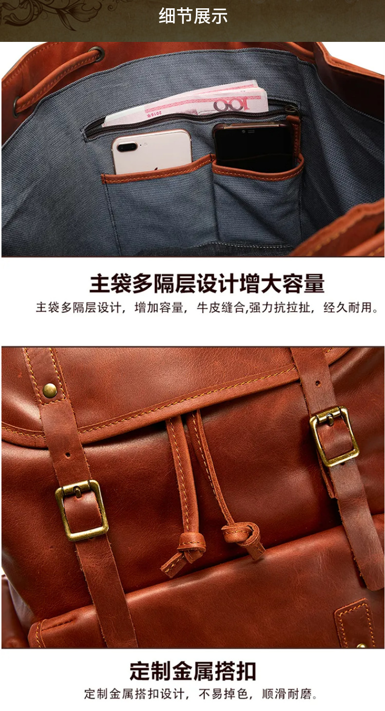새로운 대용량 가죽 백팩 레트로 전체 Cowhide 여행 배낭 야외 스포츠 멀티 포켓 여행 가방 남성용