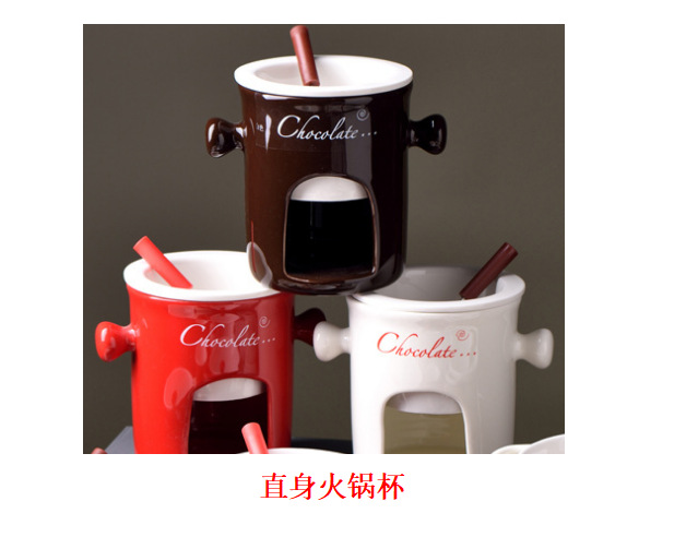 창의적인 핫팟 컵, 양쪽 손잡이 초콜릿 녹이는 용기, 치즈 가열 레스토랑용 대형 양초 세라믹 수프 컵스토어 가기