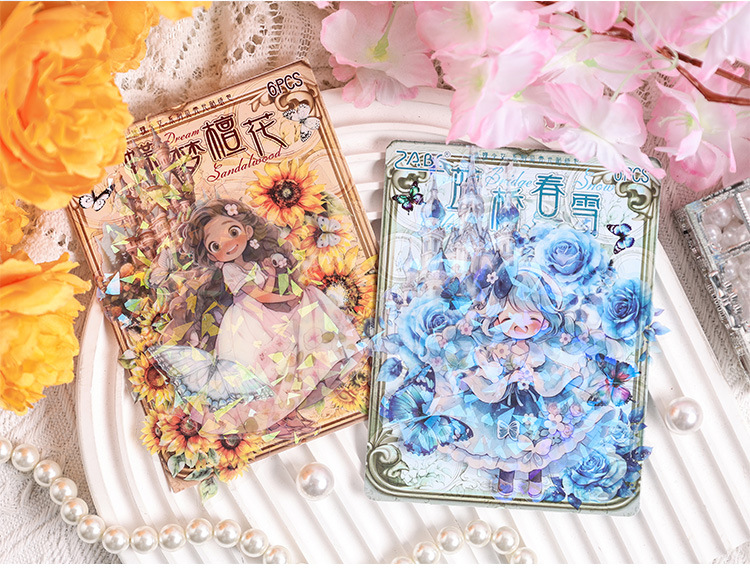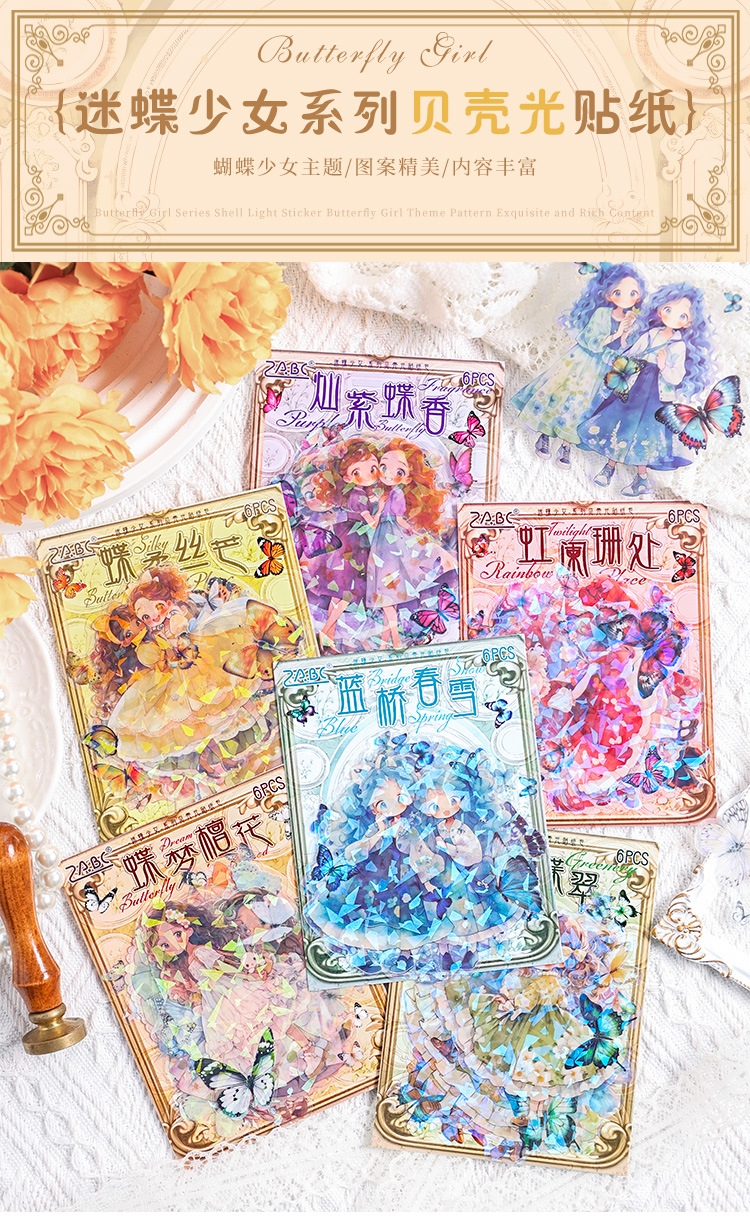 팬디 소녀 쉘 라이트 레이저 스티커 종이 가방 DIY 투명 방수 애완 동물 스티커 귀여운 소녀 문구 손 계정 스티커스토어 가기