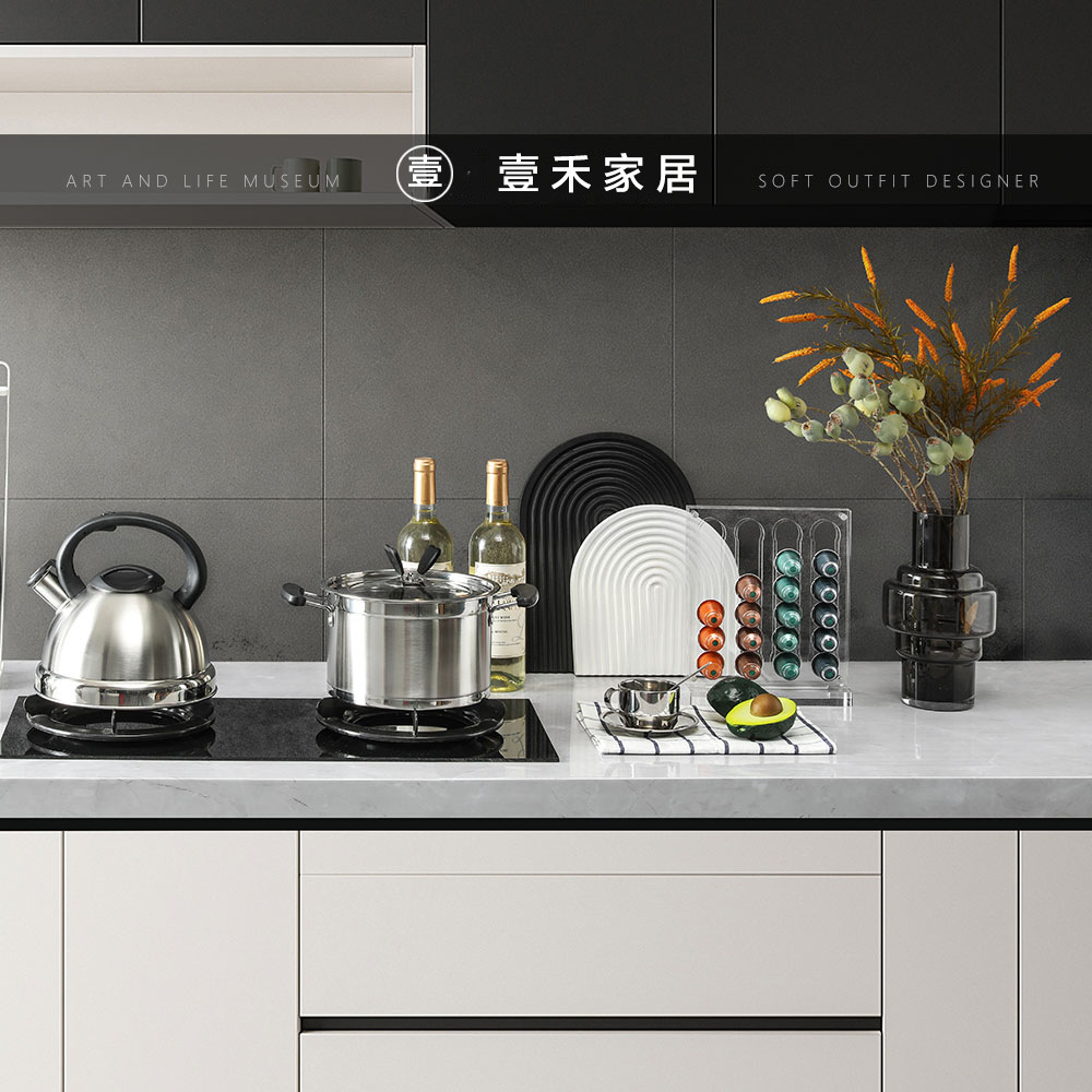 현대 빛 럭셔리 모델 룸 주방 장식 캐비닛 흑백 컬러 커팅 보드 그라인더 주방 도자기 장식 조합스토어 가기