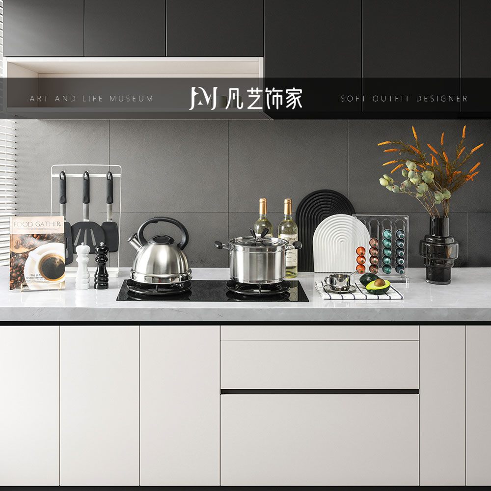 현대 빛 럭셔리 모델 룸 주방 장식 캐비닛 흑백 컬러 커팅 보드 그라인더 주방 도자기 장식 조합