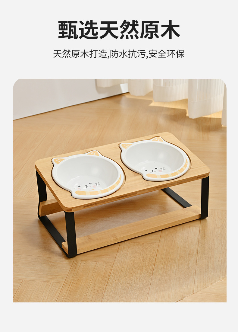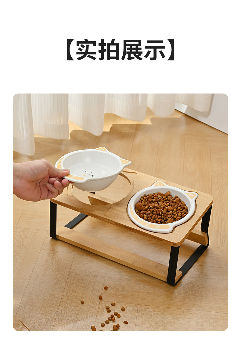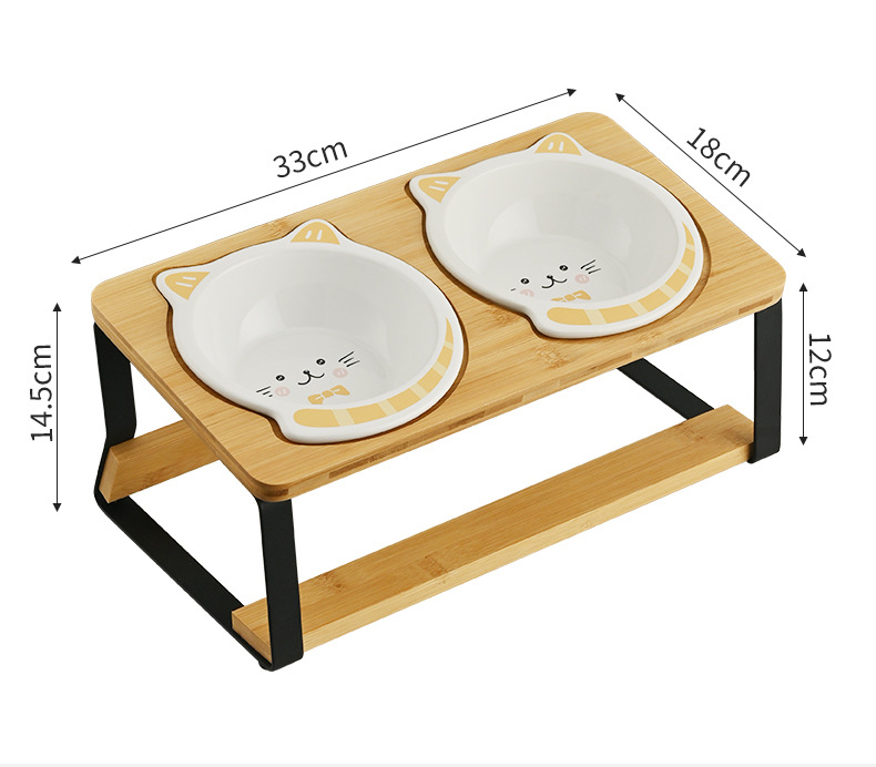 애완 동물 고양이 그릇 나무 애완 동물 고양이 그릇 랙 세라믹 더블 그릇 비스듬한 목 보호 고양이 음식 냄비 랙 안티 노크 애완 동물 그릇 랙스토어 가기