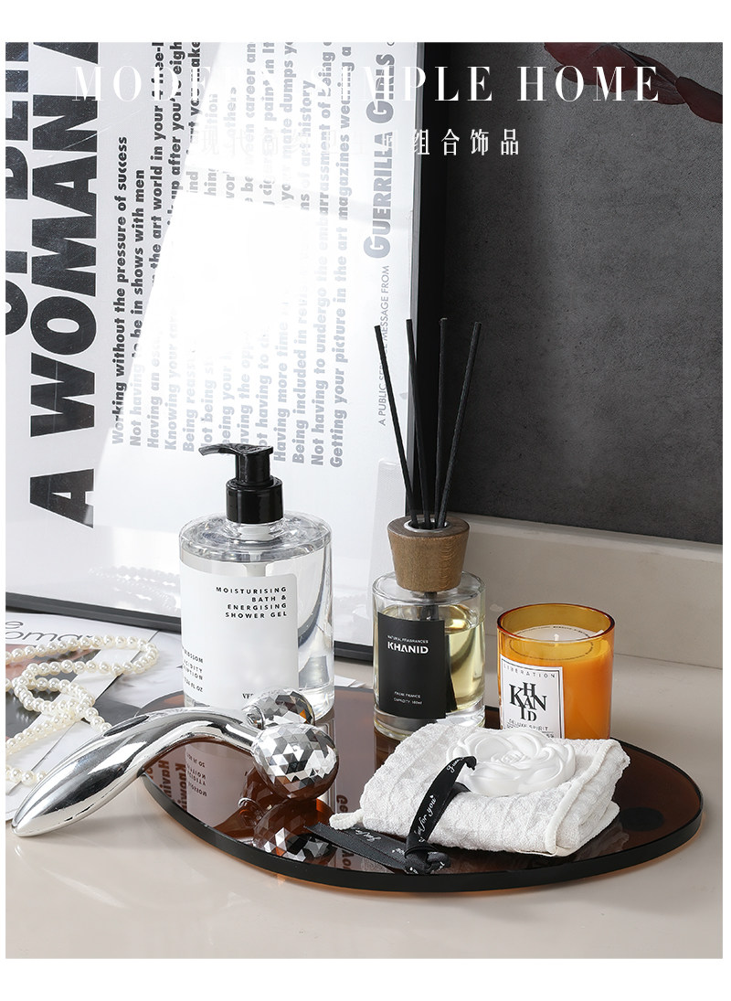 북유럽 스타일 모델 룸 화장실 보석 장식 세트 세면기 유리 트레이 거울 부드러운 장식