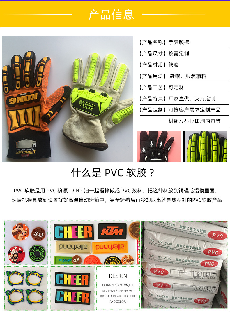 장갑 봉제 상표 TPR 충돌 방지 고무 스트립 부드러운 고무 라벨 수하물 내구성 미끄럼 방지 PVC 장갑 라벨 제조업체스토어 가기