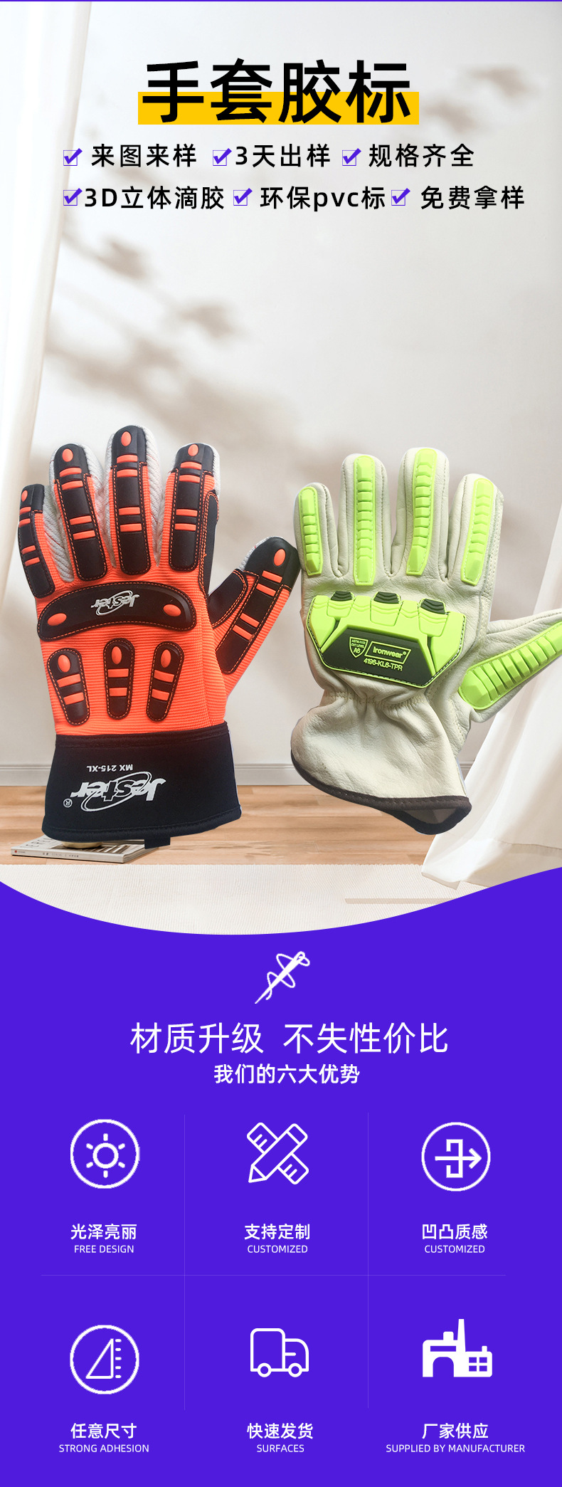 장갑 봉제 상표 TPR 충돌 방지 고무 스트립 부드러운 고무 라벨 수하물 내구성 미끄럼 방지 PVC 장갑 라벨 제조업체