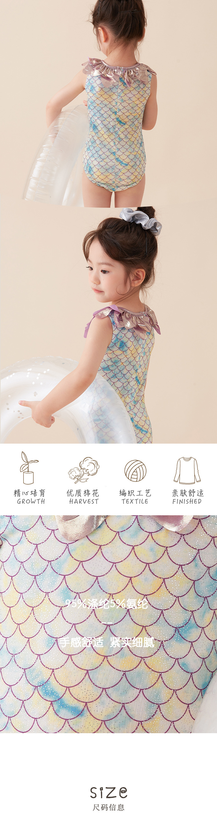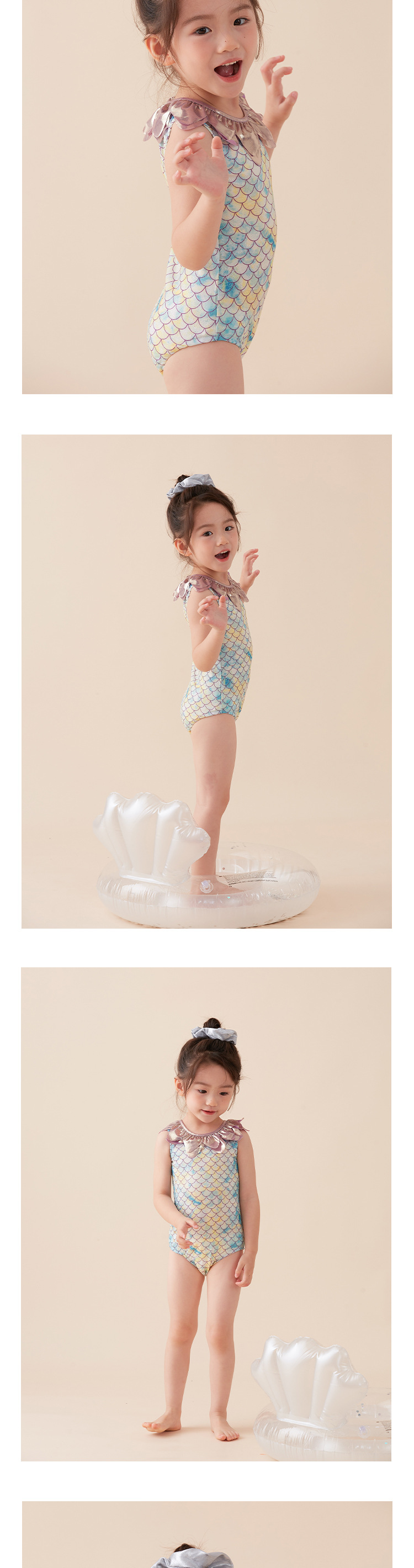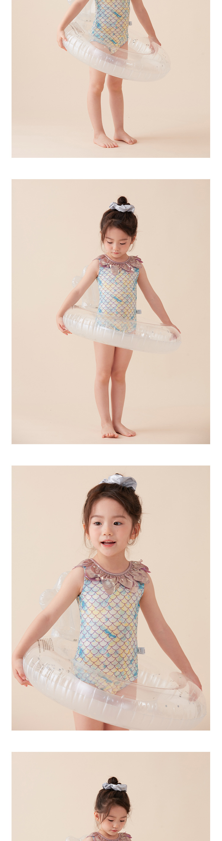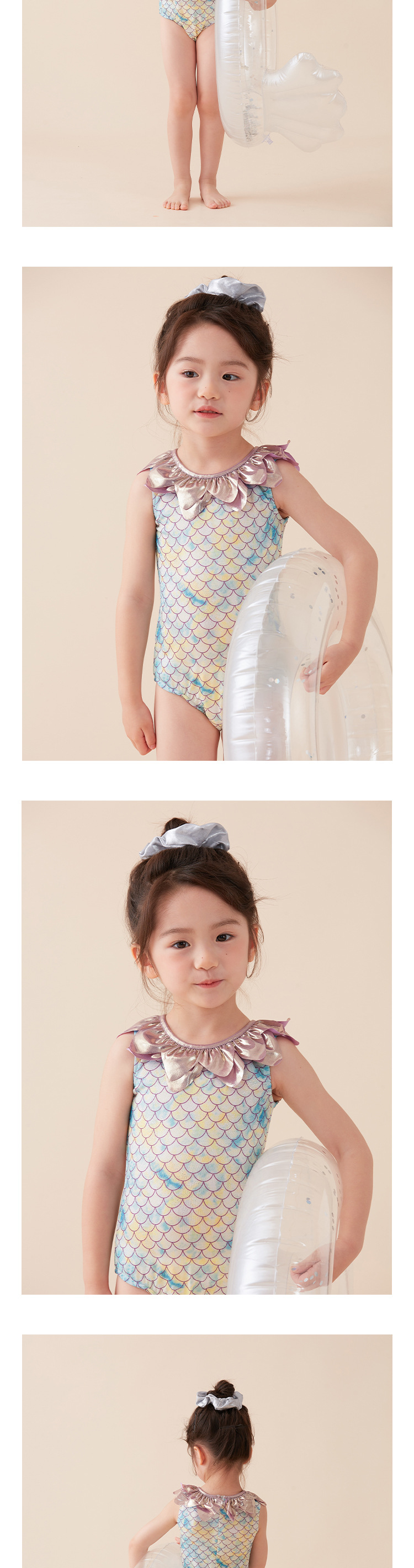 여자 수영복 2024 여름 3 차원 꽃 꽃잎 칼라 생선 스케일 인쇄 어린이 슬링 수영 아기의 인어 수영복스토어 가기