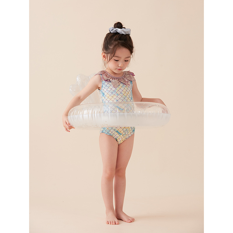 여자 수영복 2024 여름 3 차원 꽃 꽃잎 칼라 생선 스케일 인쇄 어린이 슬링 수영 아기의 인어 수영복