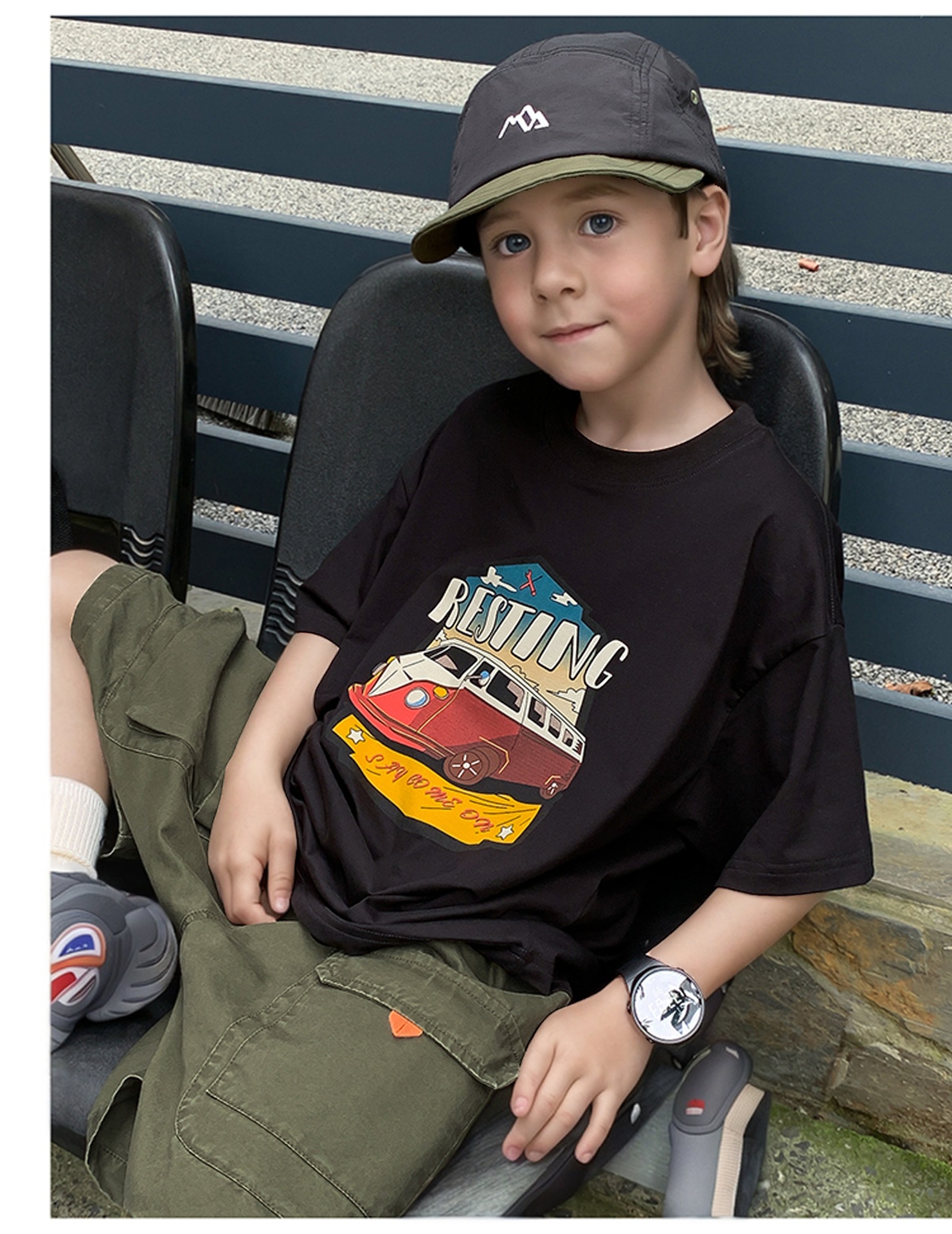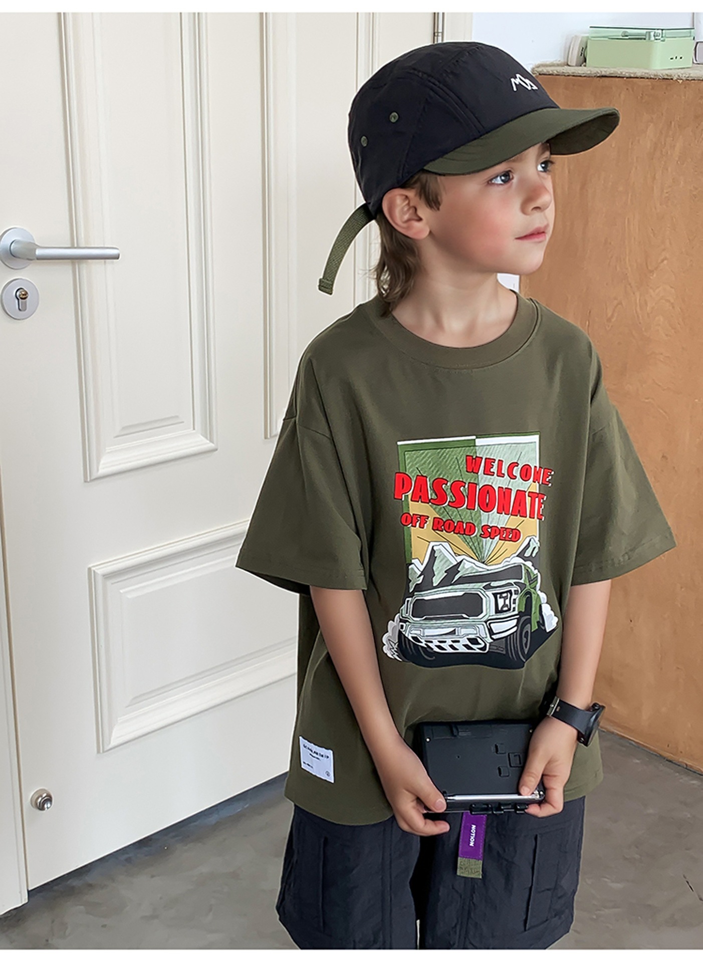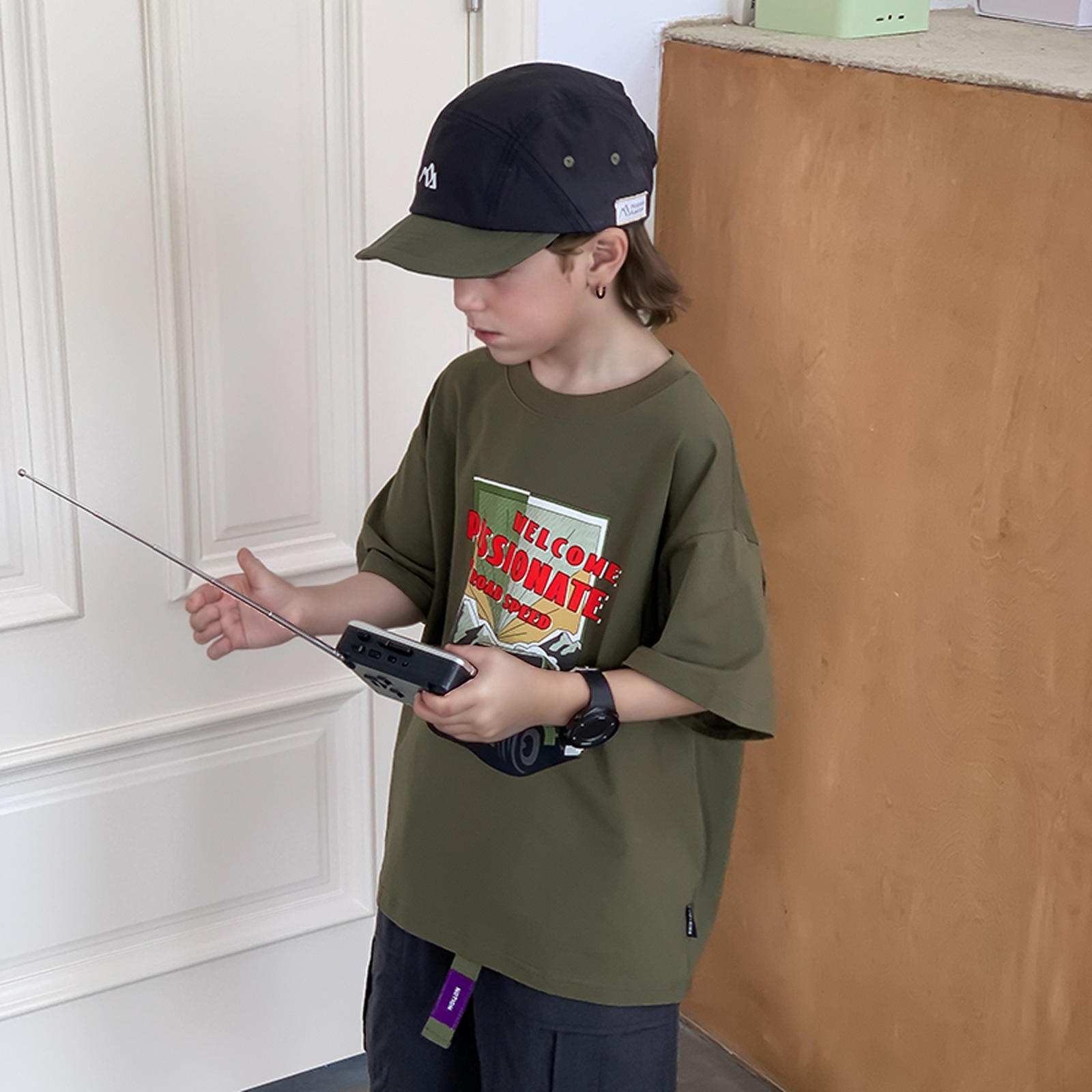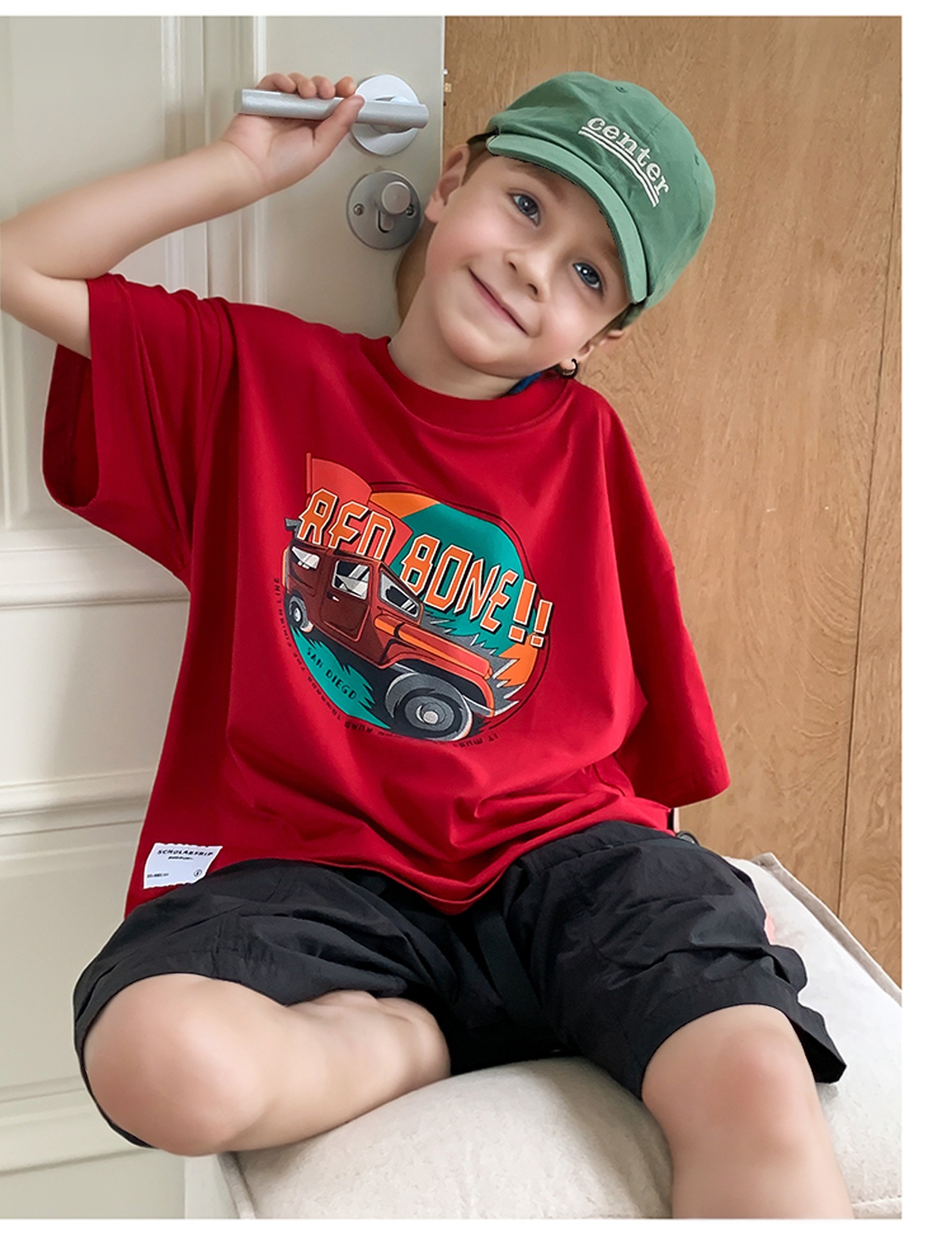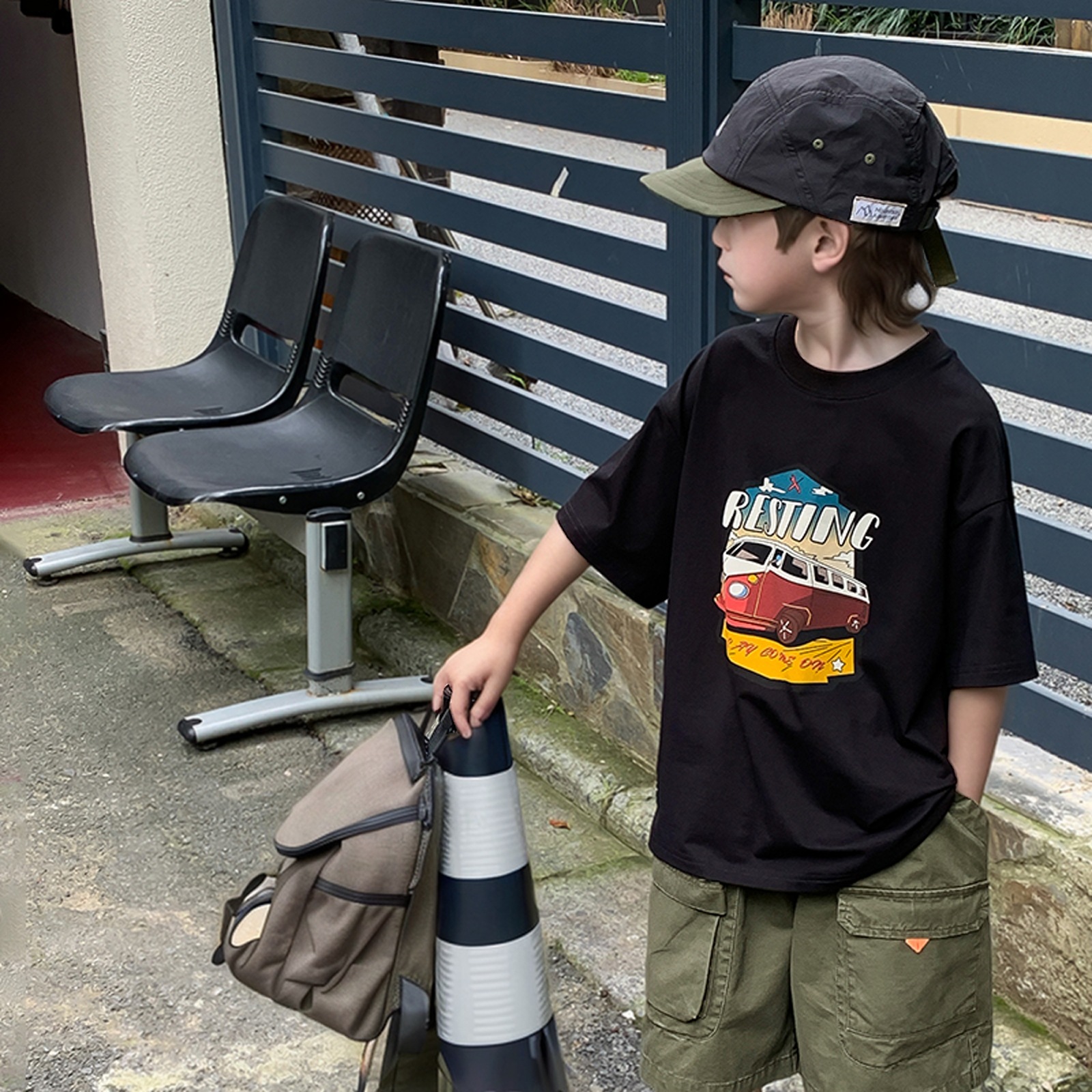 2025년 신작 여름 옷, 남아 및 대형 아동용 라운드 넥 티셔츠, 반팔, 패셔너블한 아동용 반팔 한국식 베이비 탑, 남성용 트렌디스토어 가기