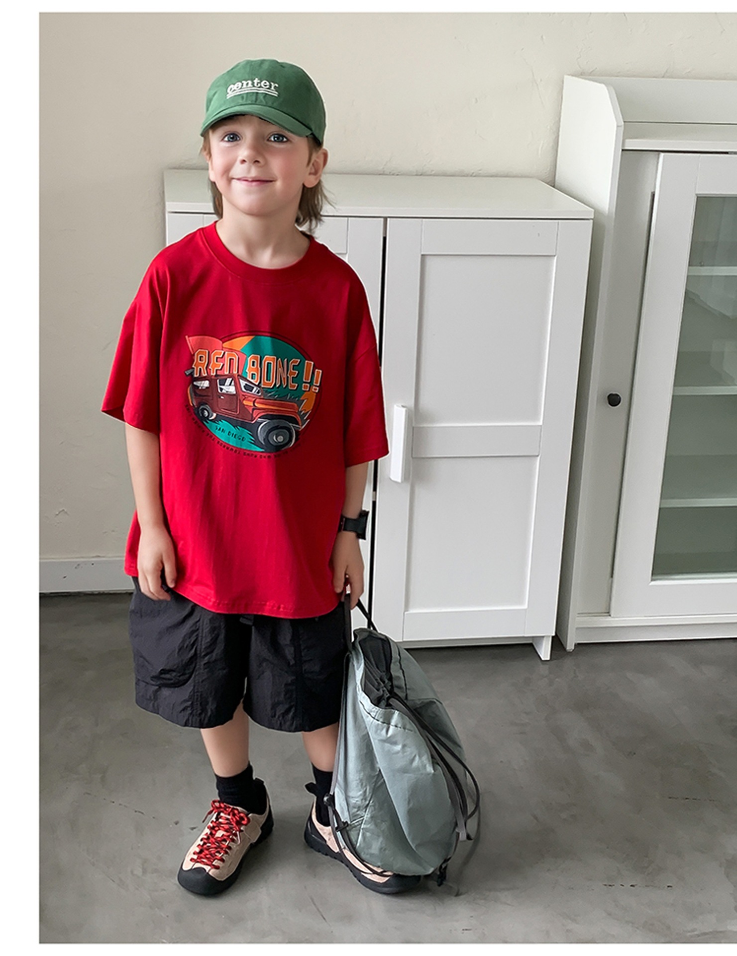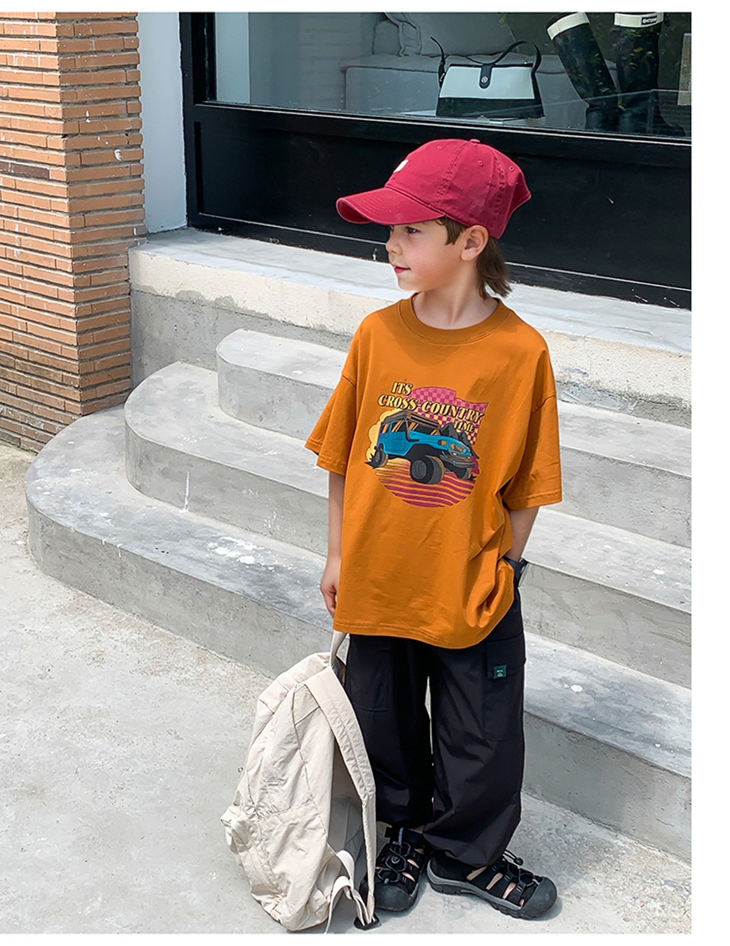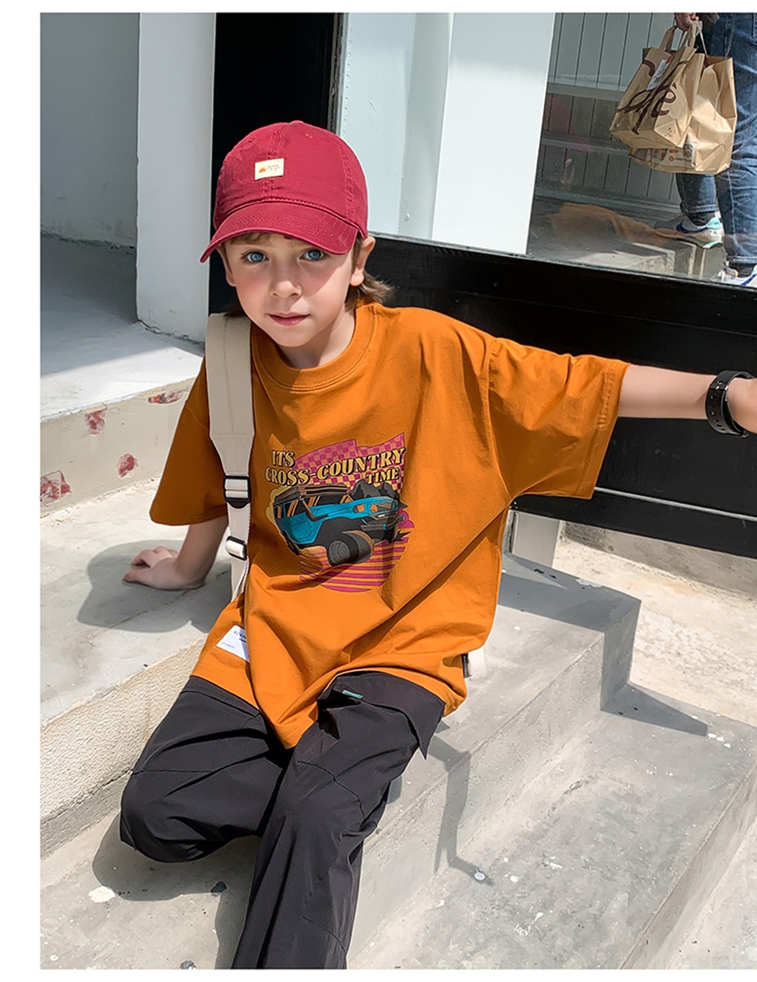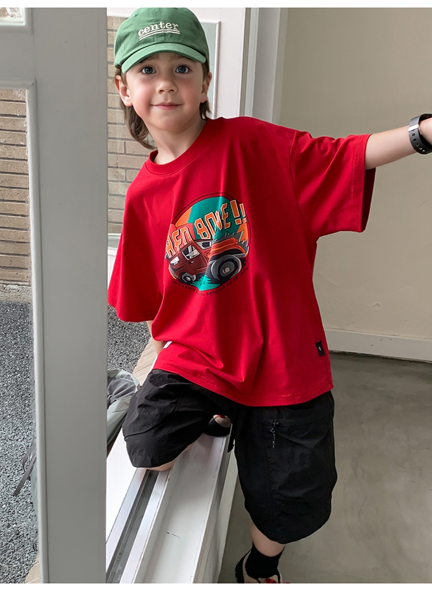 2025년 신작 여름 옷, 남아 및 대형 아동용 라운드 넥 티셔츠, 반팔, 패셔너블한 아동용 반팔 한국식 베이비 탑, 남성용 트렌디스토어 가기