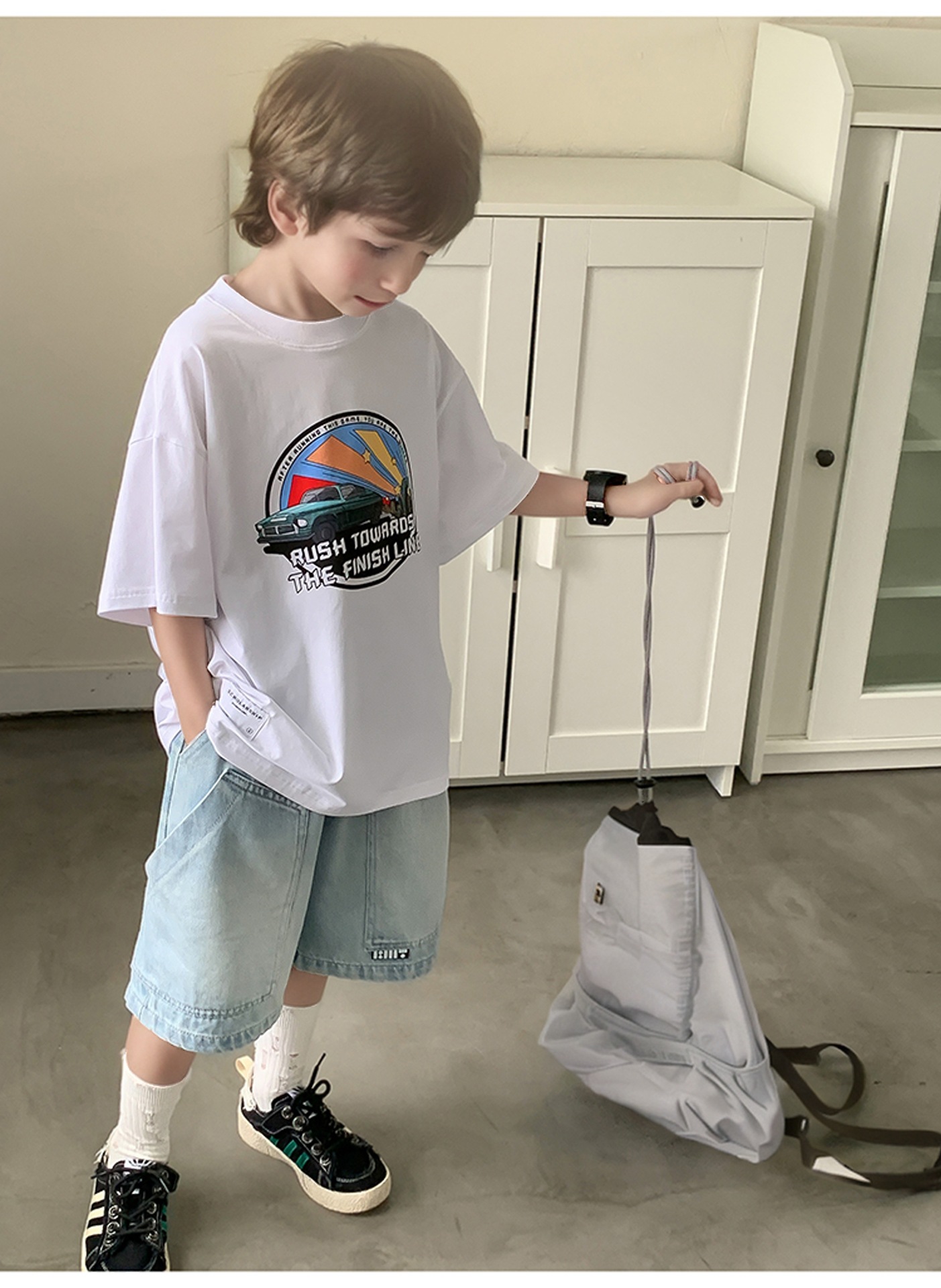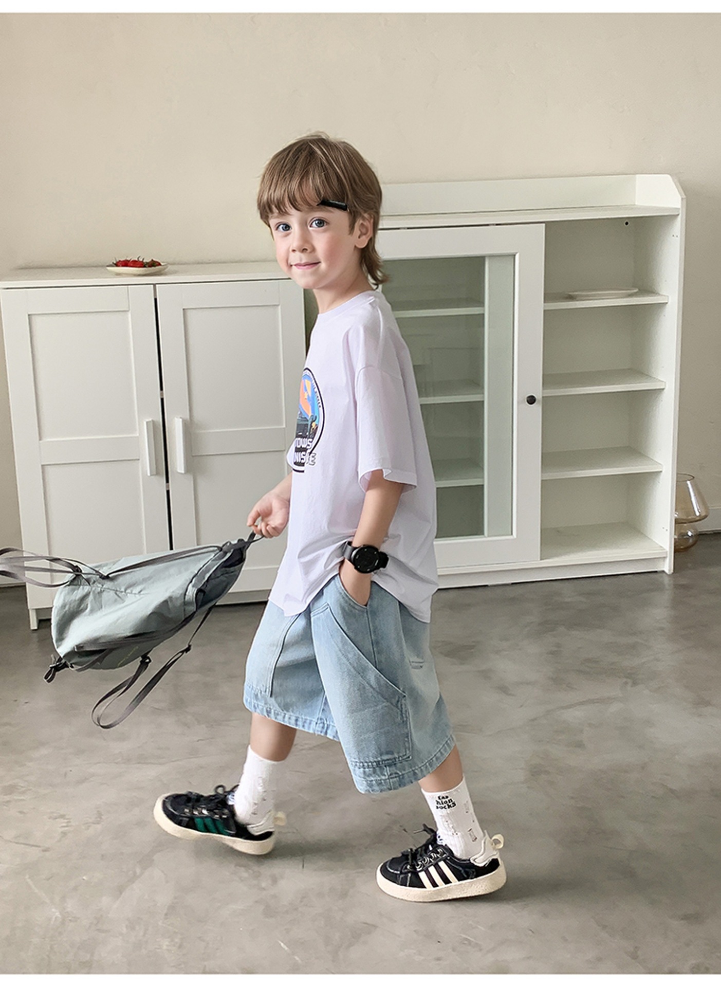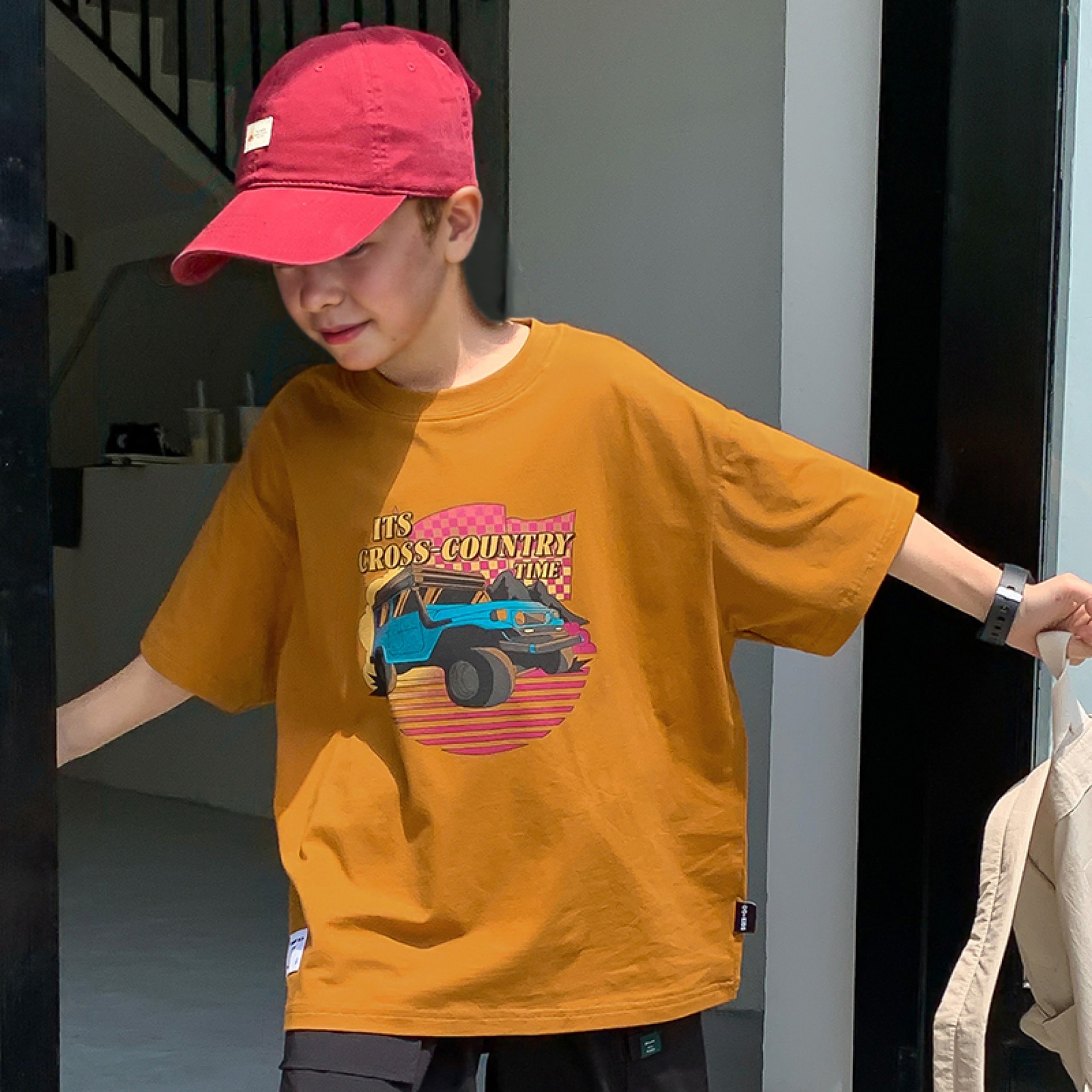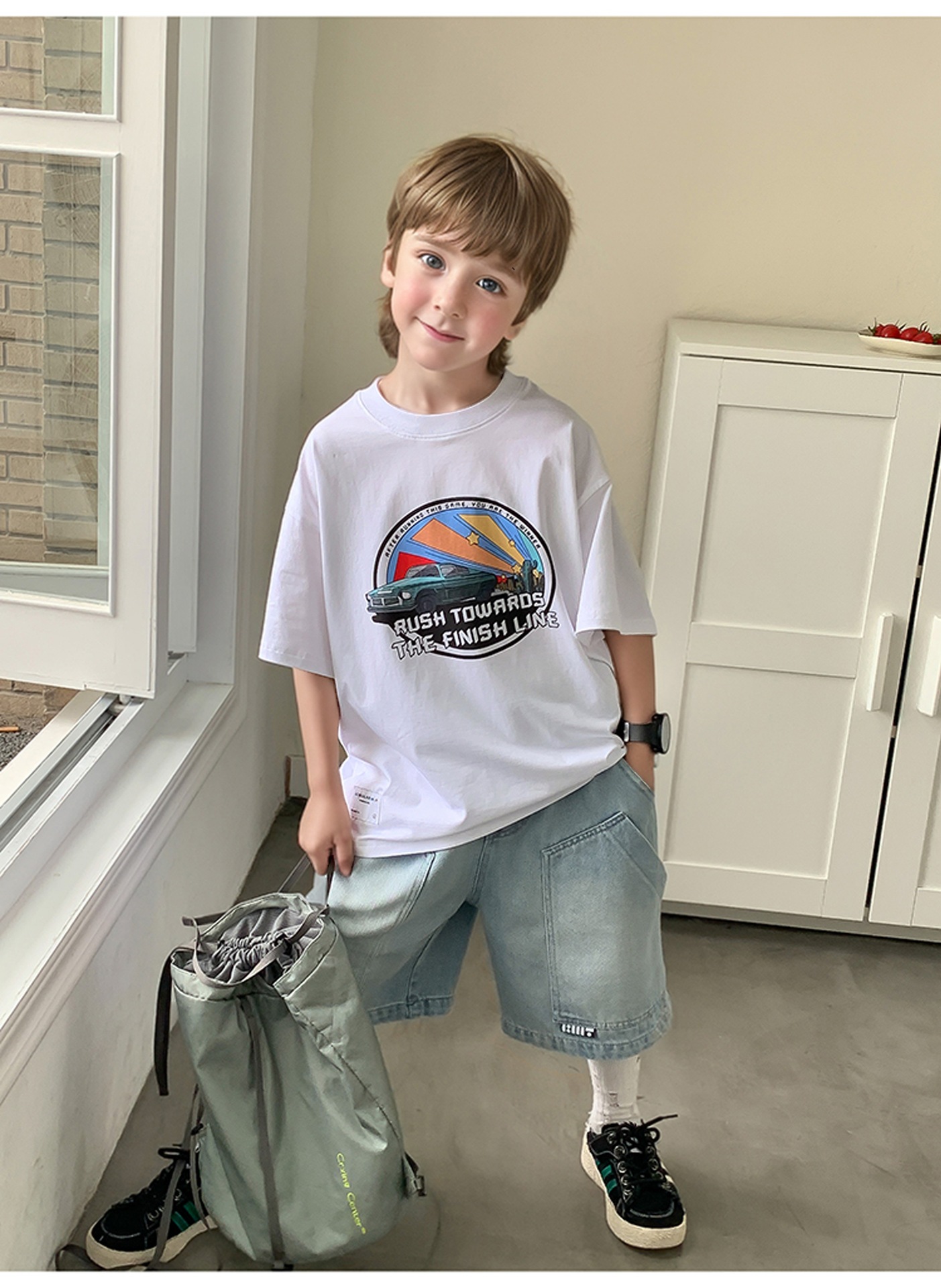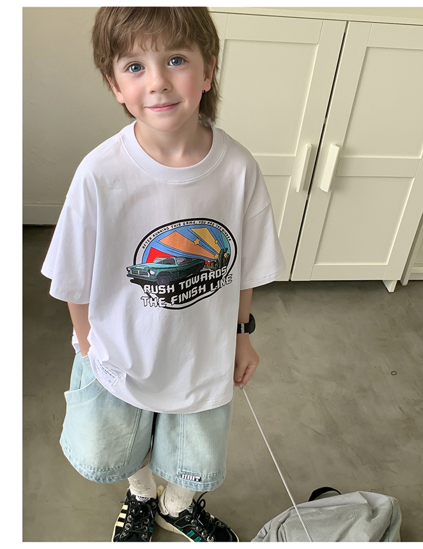 2025년 신작 여름 옷, 남아 및 대형 아동용 라운드 넥 티셔츠, 반팔, 패셔너블한 아동용 반팔 한국식 베이비 탑, 남성용 트렌디스토어 가기