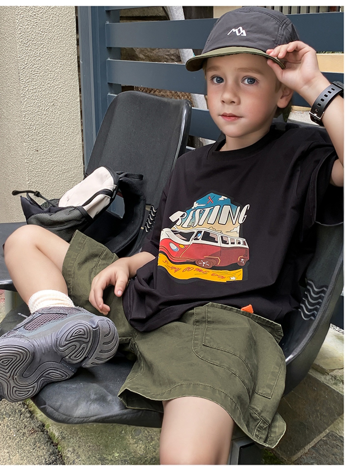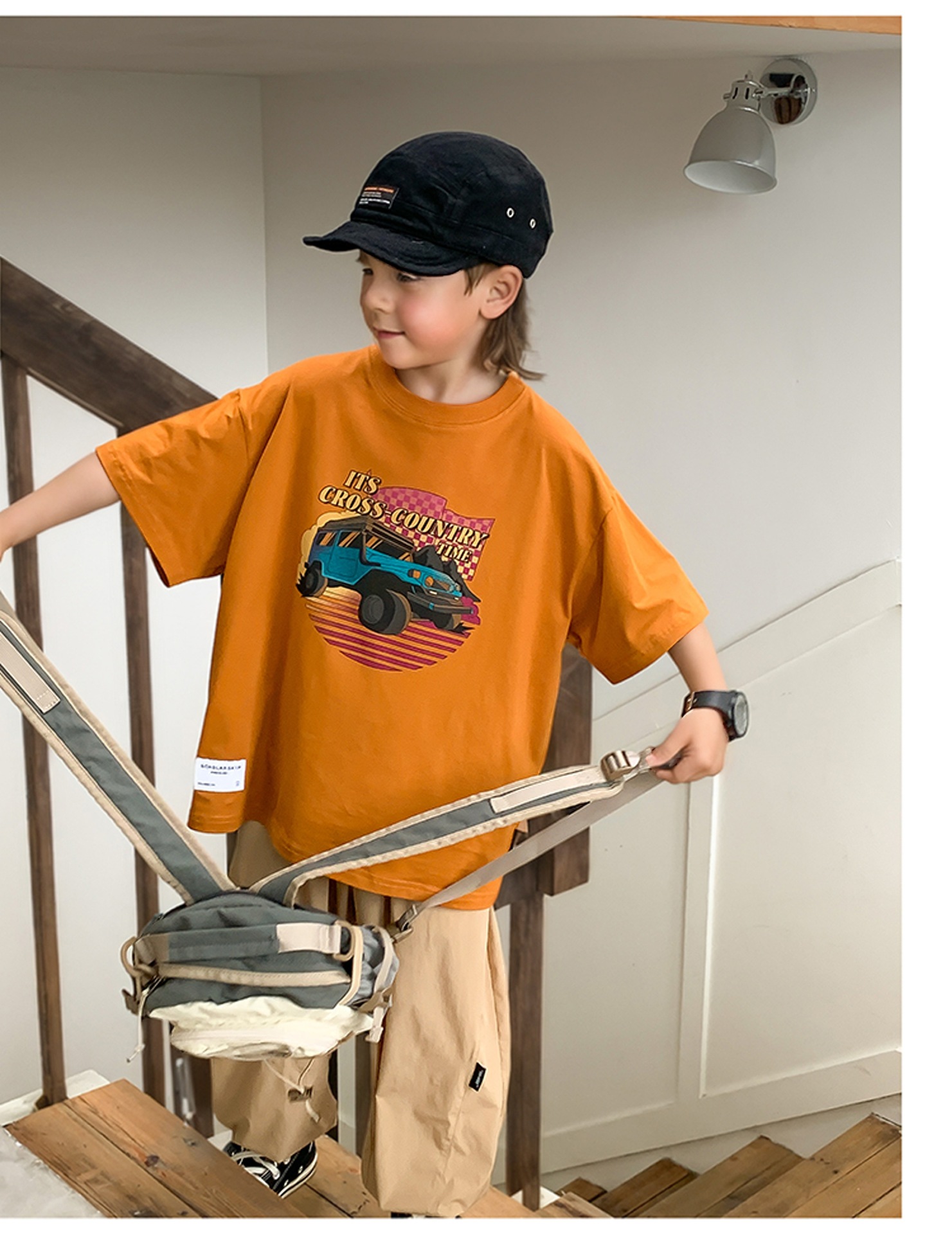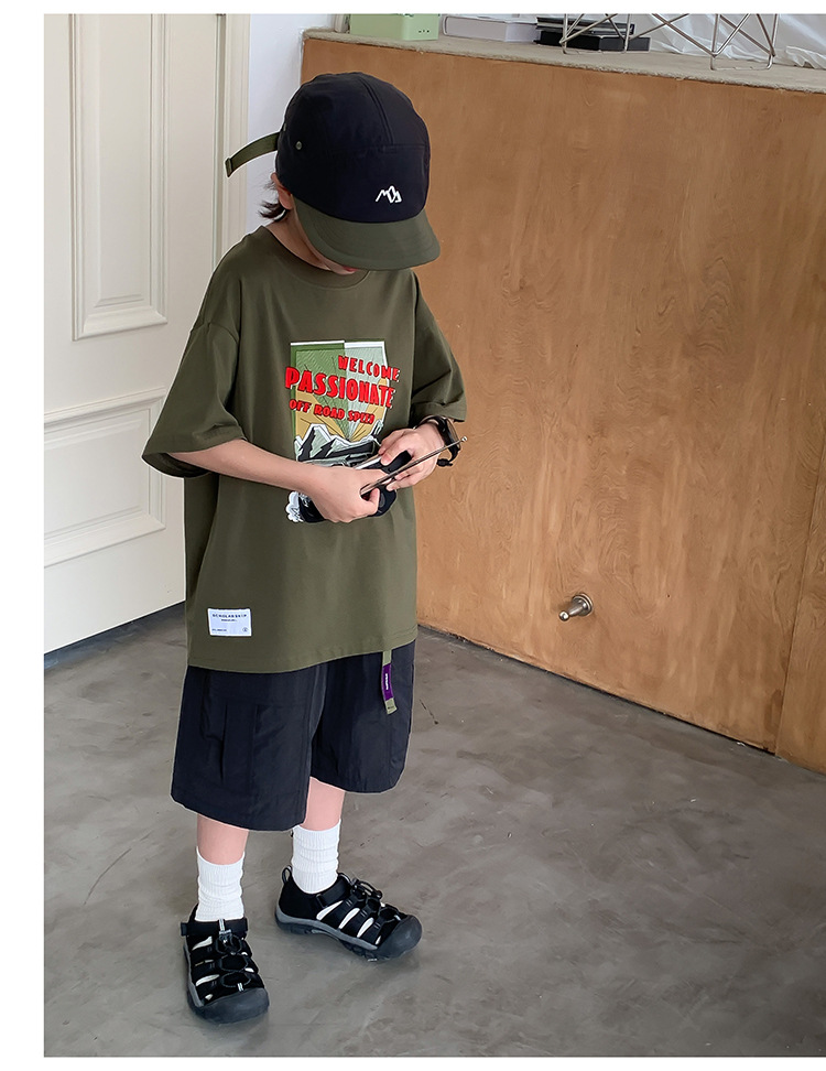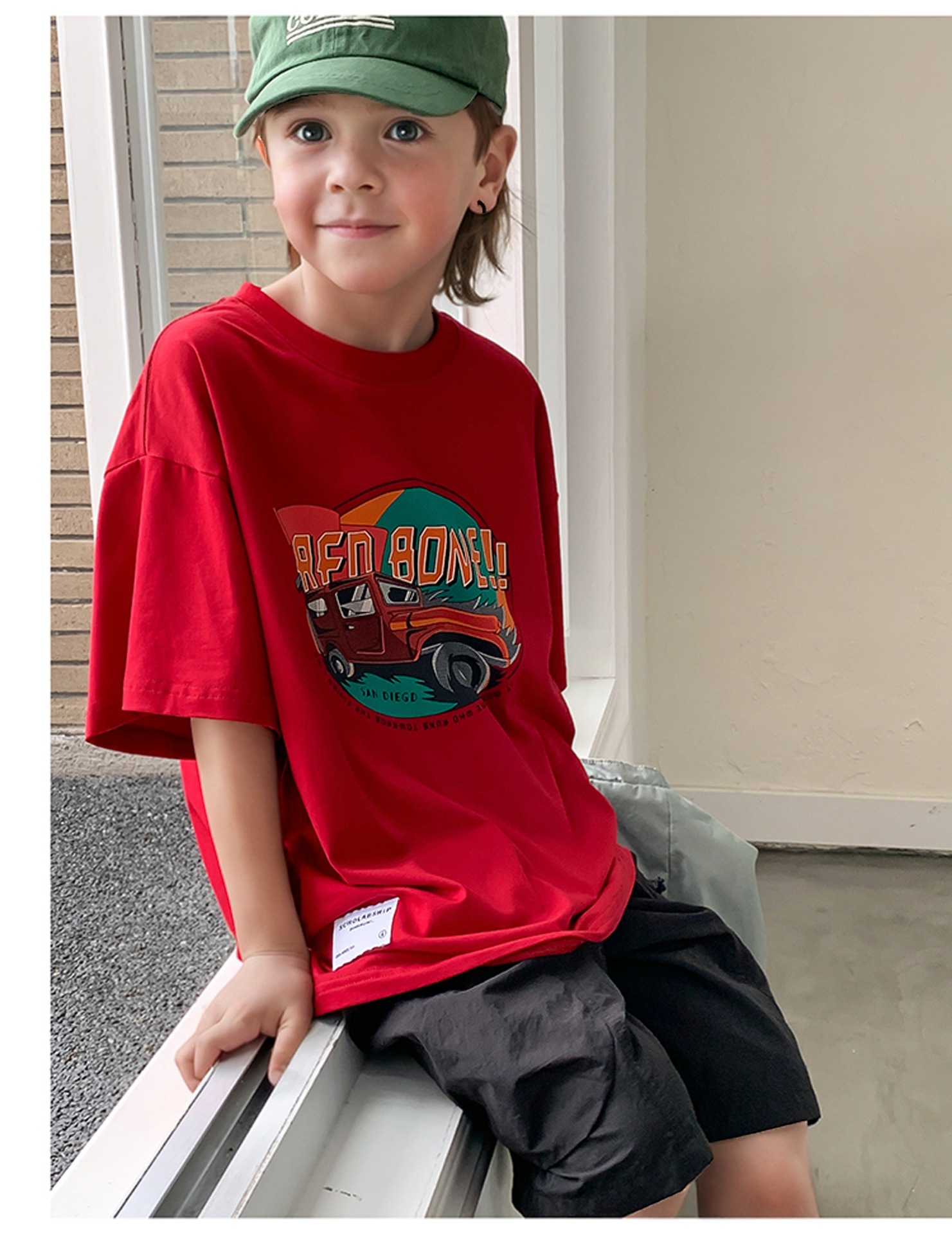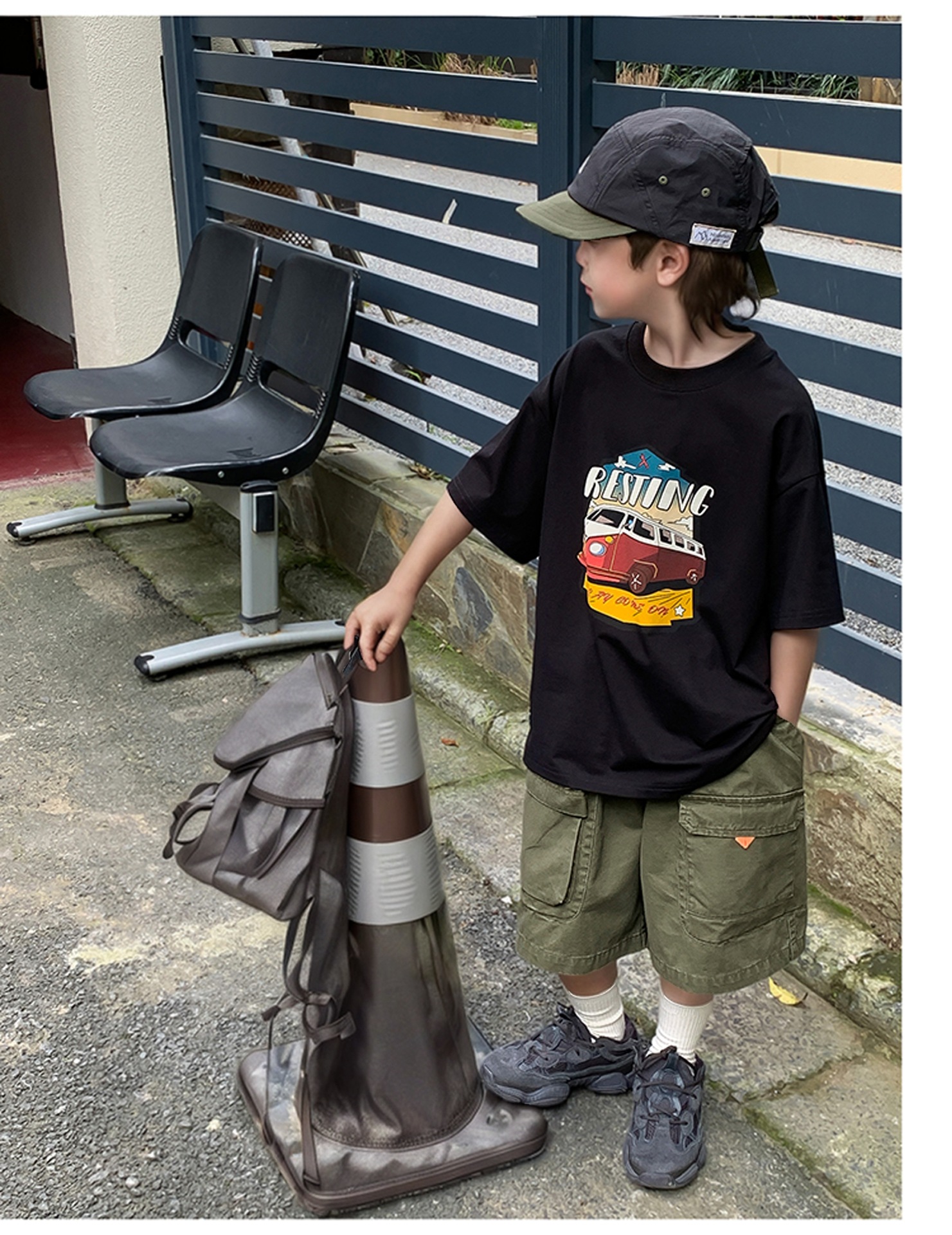 2025년 신작 여름 옷, 남아 및 대형 아동용 라운드 넥 티셔츠, 반팔, 패셔너블한 아동용 반팔 한국식 베이비 탑, 남성용 트렌디스토어 가기