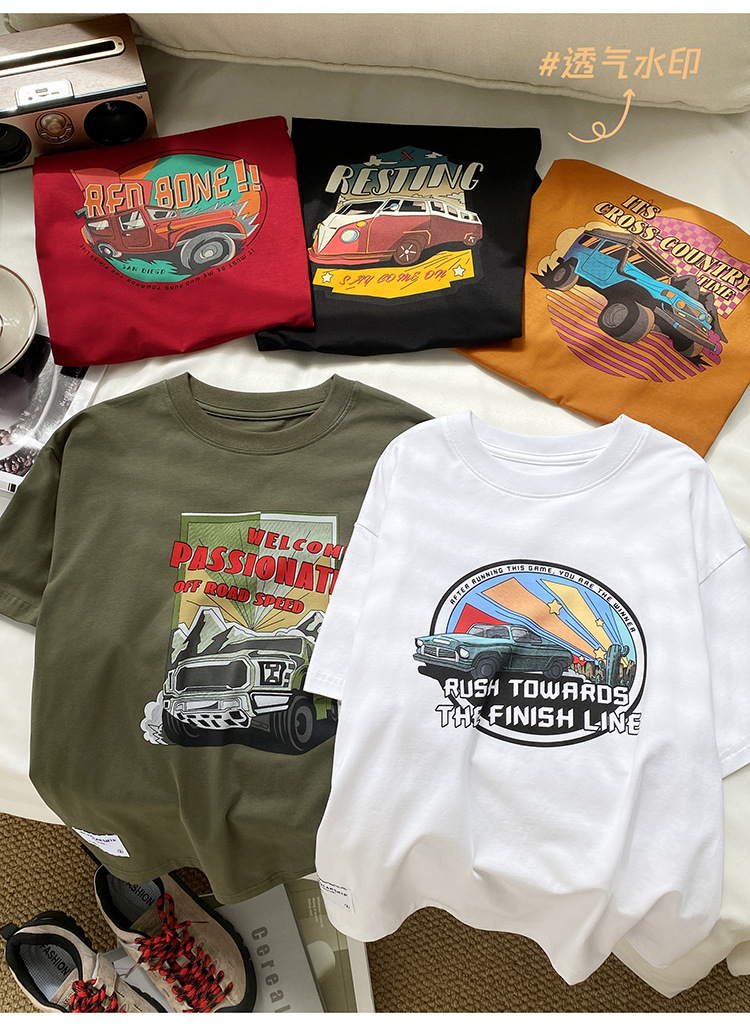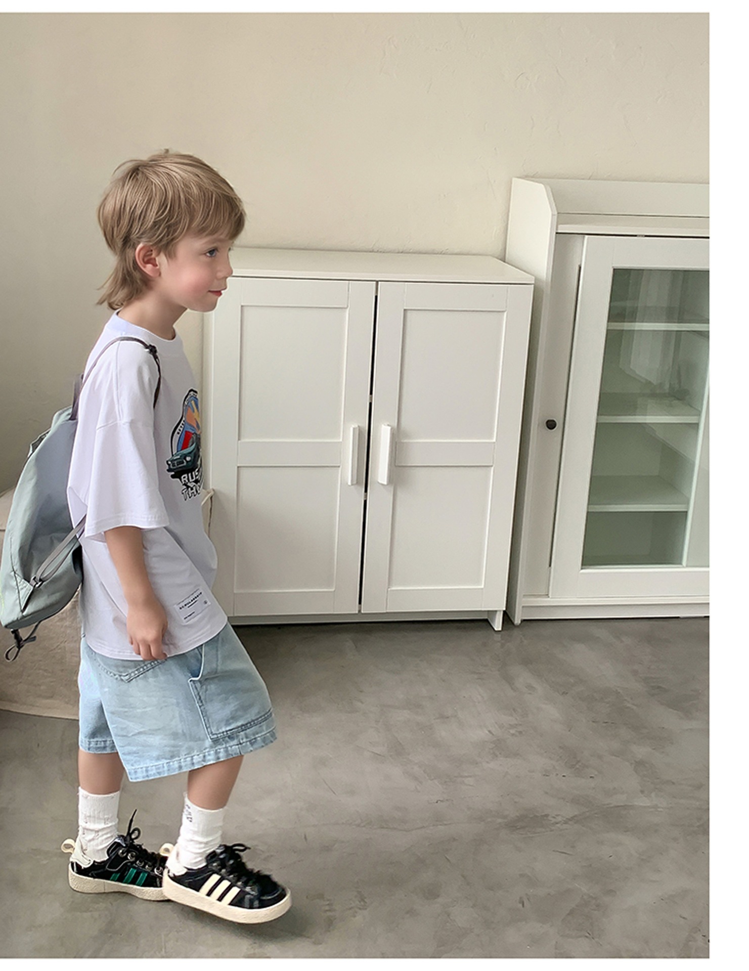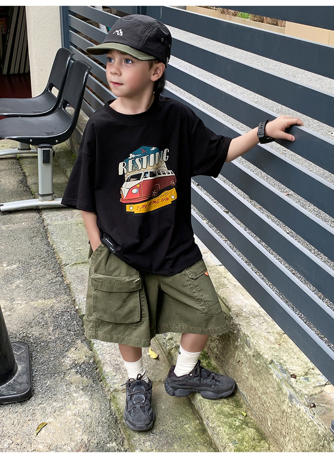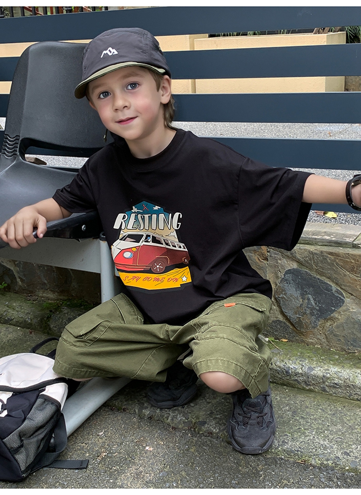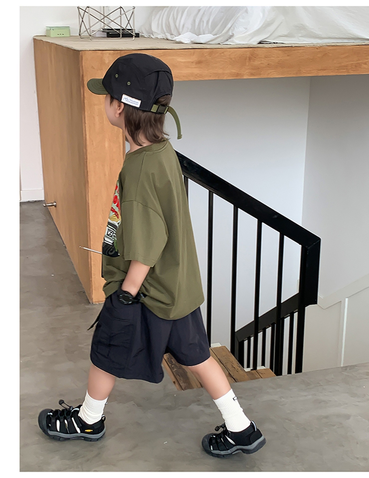 2025년 신작 여름 옷, 남아 및 대형 아동용 라운드 넥 티셔츠, 반팔, 패셔너블한 아동용 반팔 한국식 베이비 탑, 남성용 트렌디스토어 가기