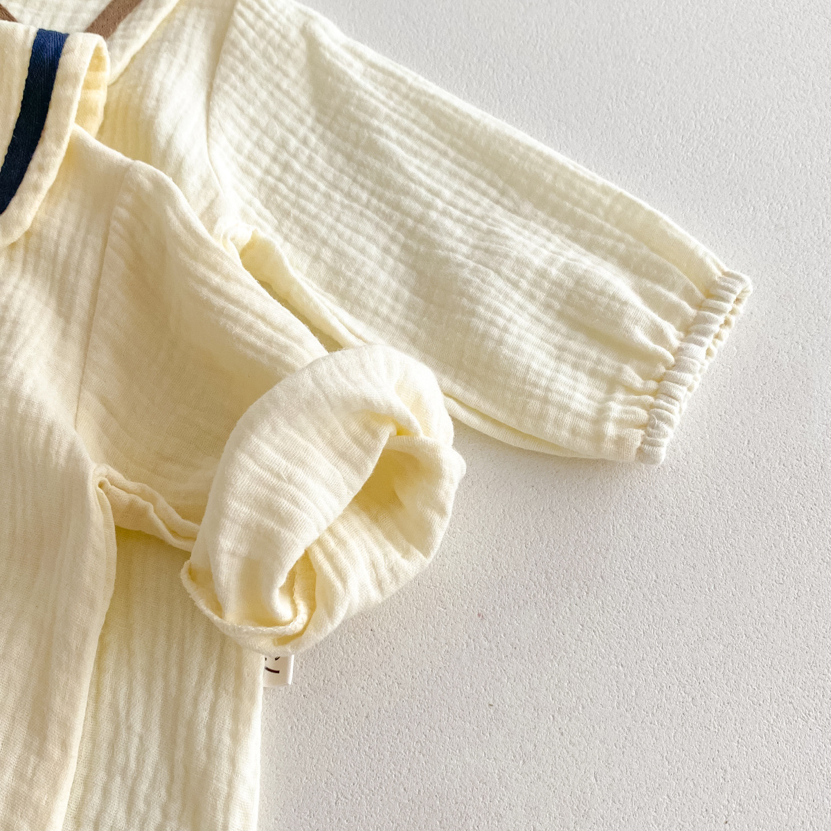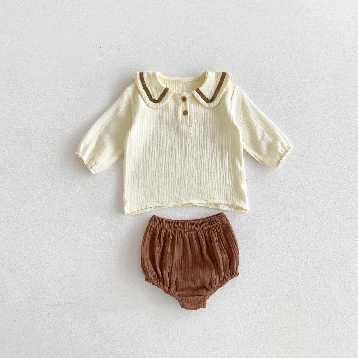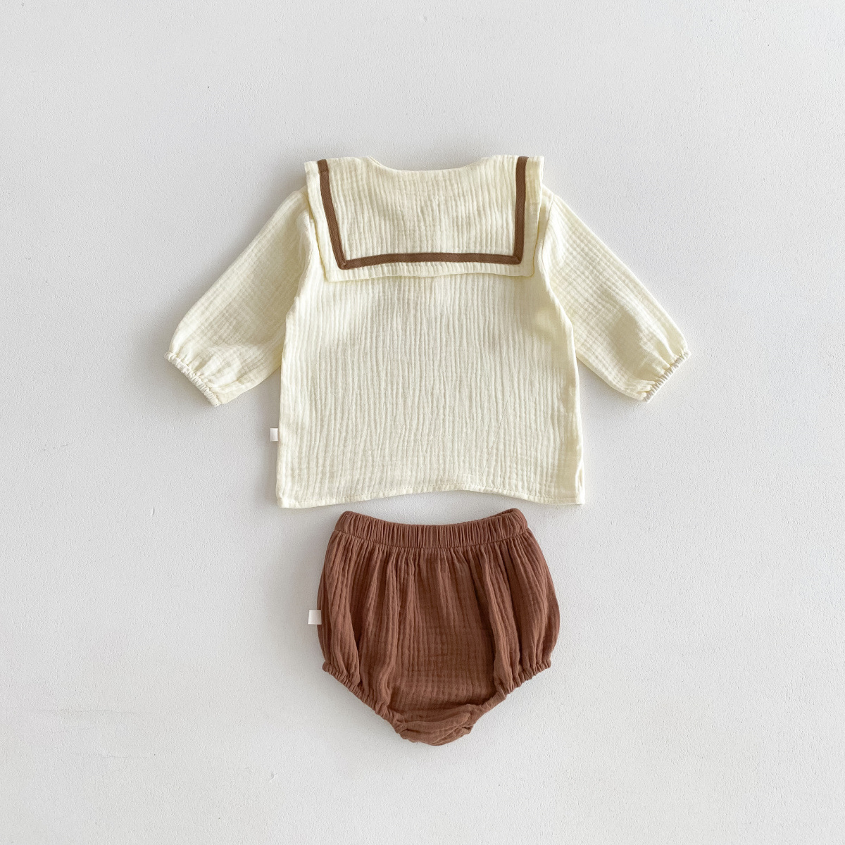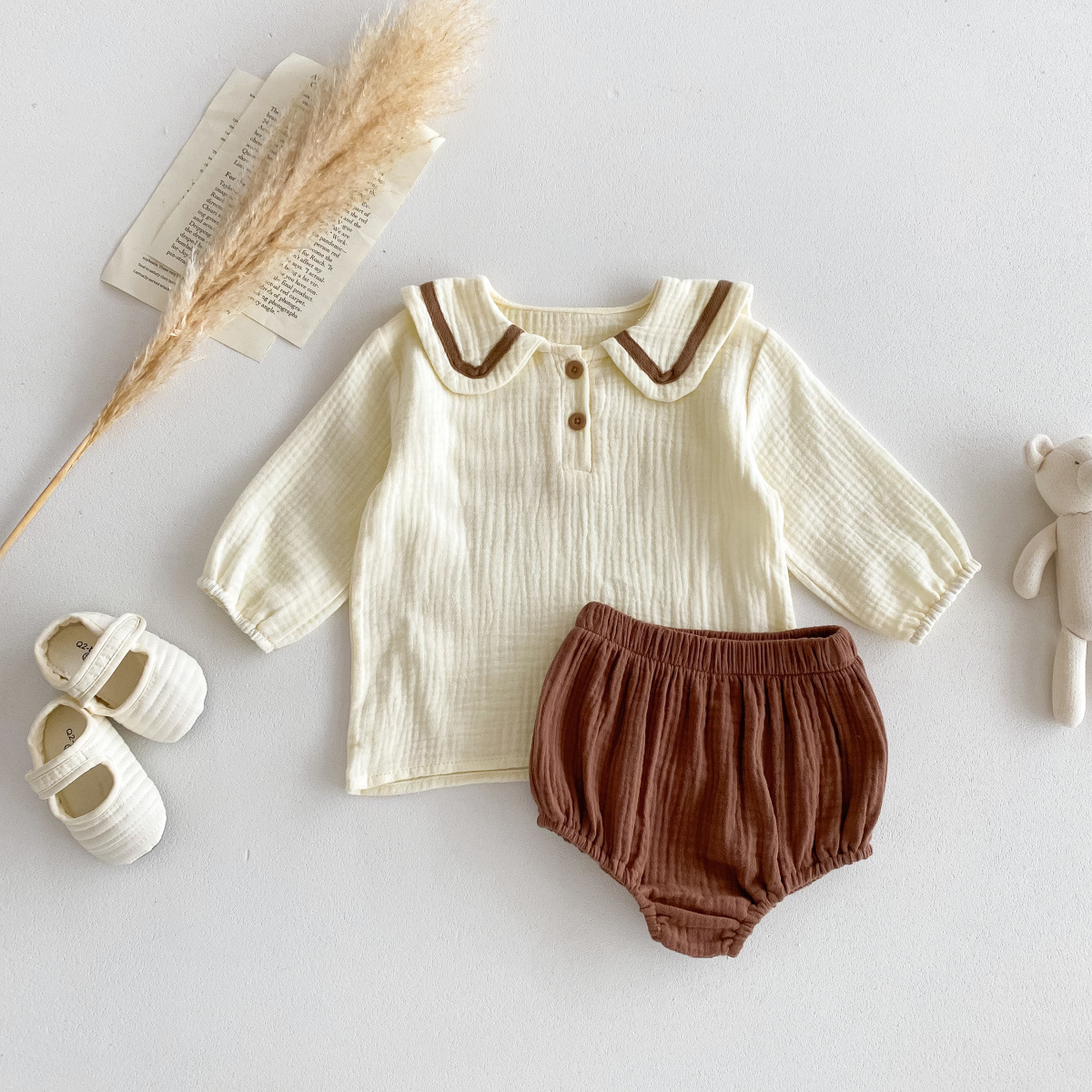 한국 스타일 아기 옷깃 탑 빵 바지 세트 유니섹스 신생아 네이비 칼라 면 캐주얼 세트