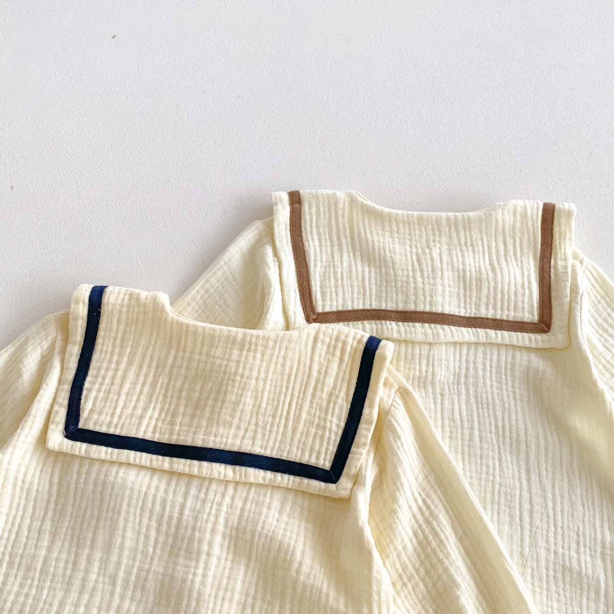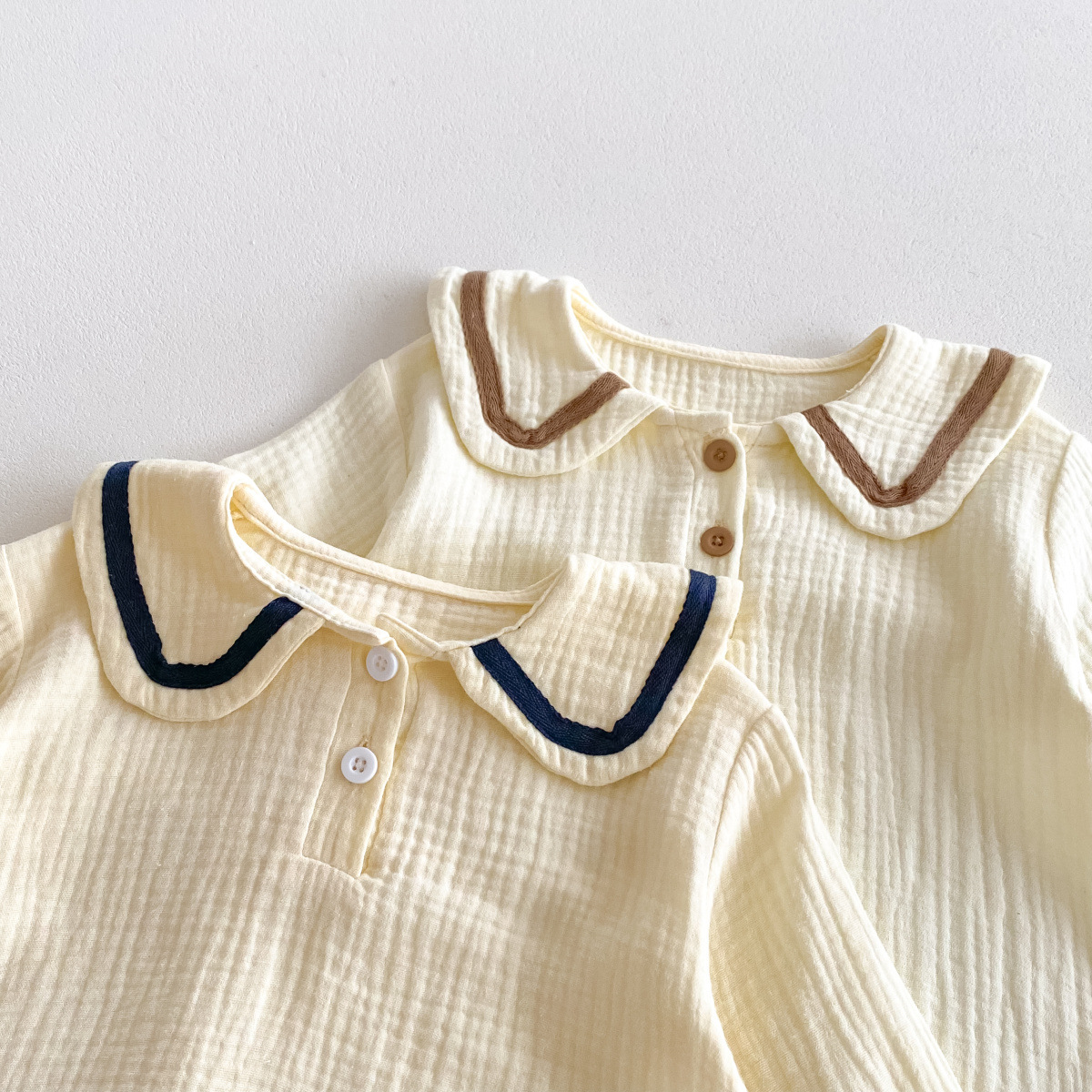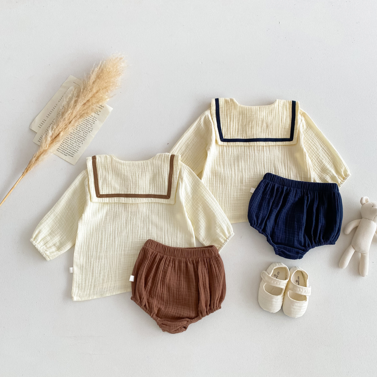 한국 스타일 아기 옷깃 탑 빵 바지 세트 유니섹스 신생아 네이비 칼라 면 캐주얼 세트스토어 가기
