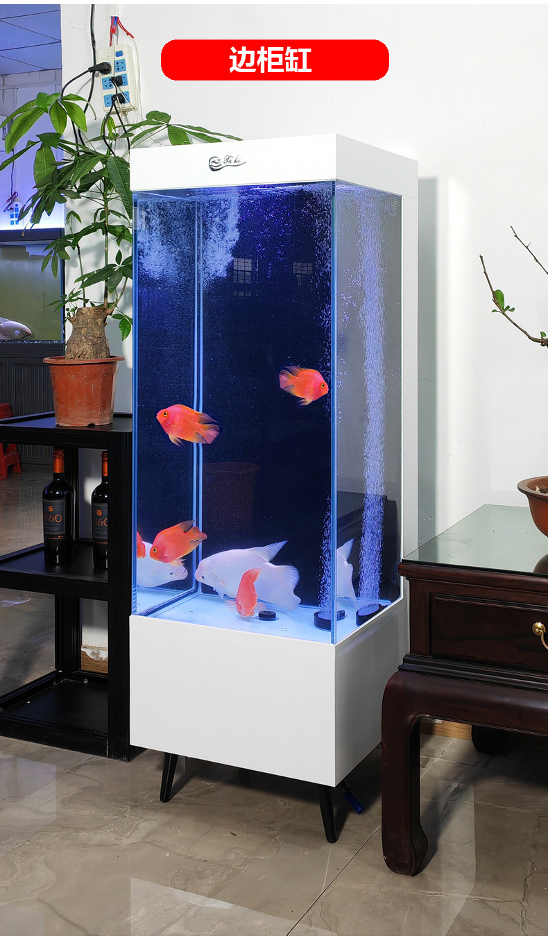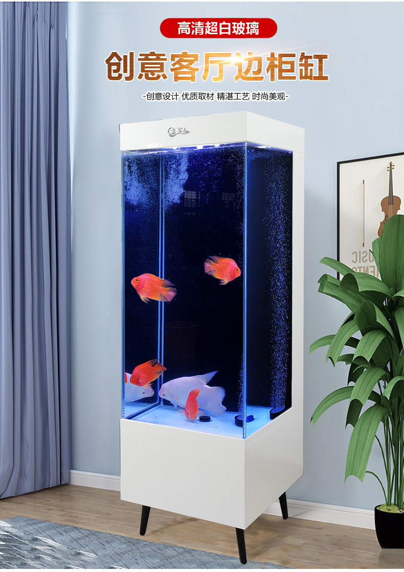 가정용 슈퍼 화이트 플로어 물고기 탱크 거실 새로운 빛 럭셔리 백 필터 벽 전체 세트 무료 수족관 수직 금붕어 탱크