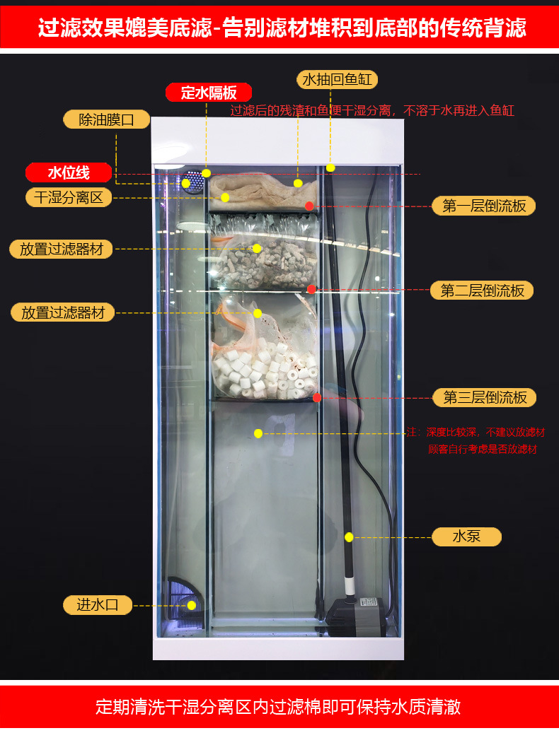 • 높은 관상용 표면: 길이 50, 너비 48, 총 높이 146cm (건조하고 젖은 뒤 필터)