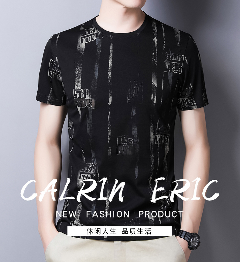 여름 트렌디 브랜드 남성 반팔 티셔츠 프린트 라운드 넥 탑 청소년 패션 캐주얼 반팔베이스 셔츠 트렌디스토어 가기