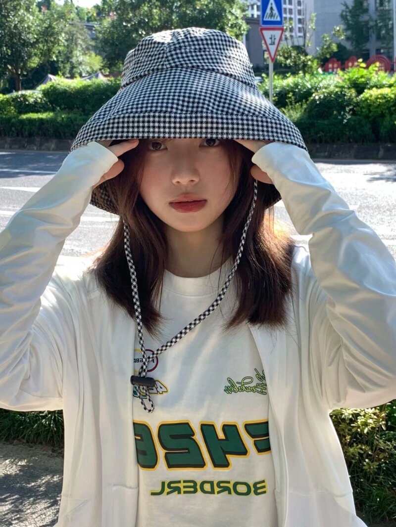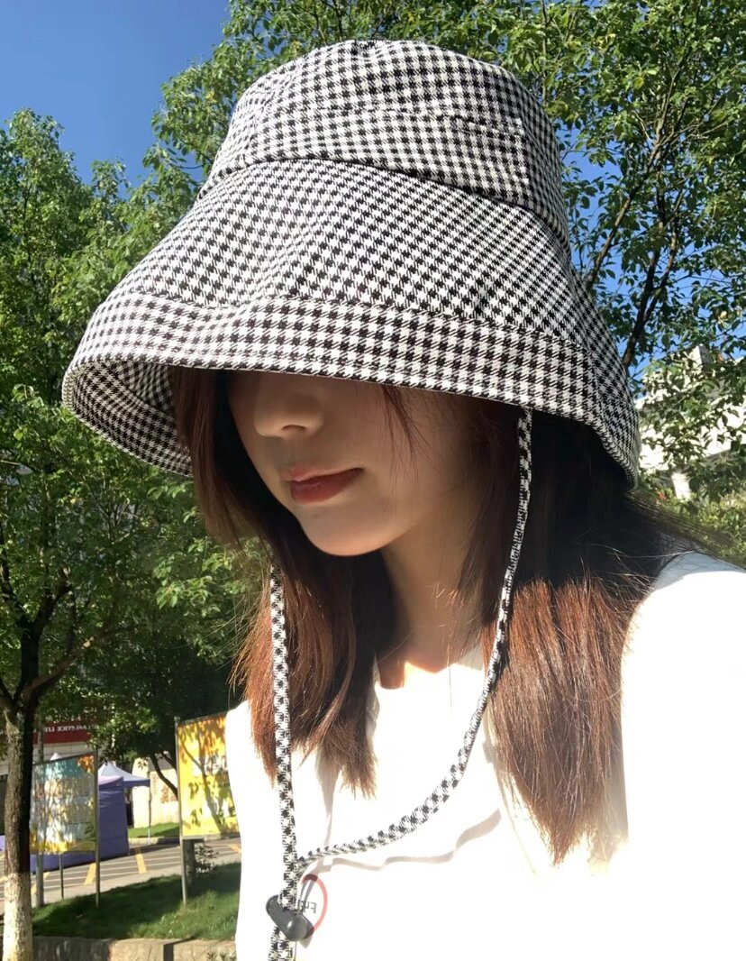 Houndstooth Sunscreen Fisherman Hat 여성의 여름 안티 자외선 큰 챙이 차양 모자 얼굴 음영 유행 태양 모자스토어 가기
