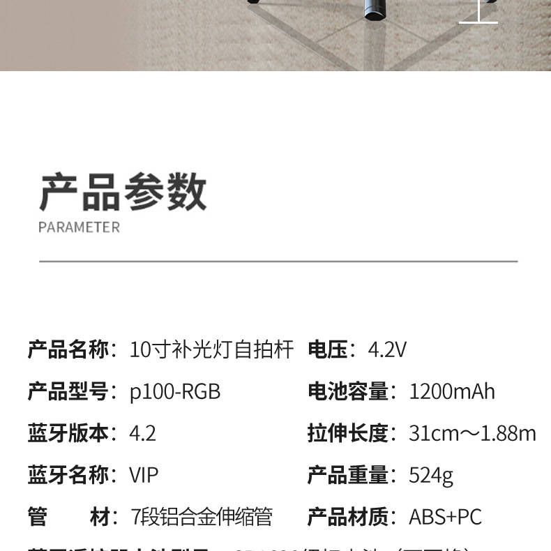 P100RGB 신세대 채우기 빛 라이브 브래킷 휴대용 LED 컬러 마키 3 다리 블루투스 셀카 스틱