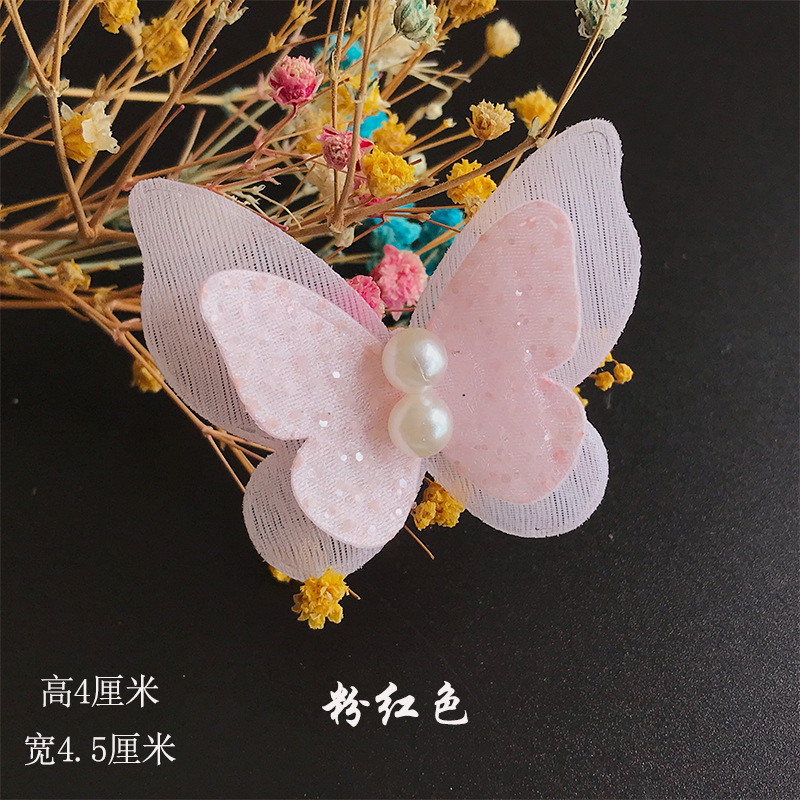 한국어 버전의 어린이 헤어 액세서리 더블 핫 에지 진주 나비 DIY 수제 어린이 원피스 머리핀 의류 소재