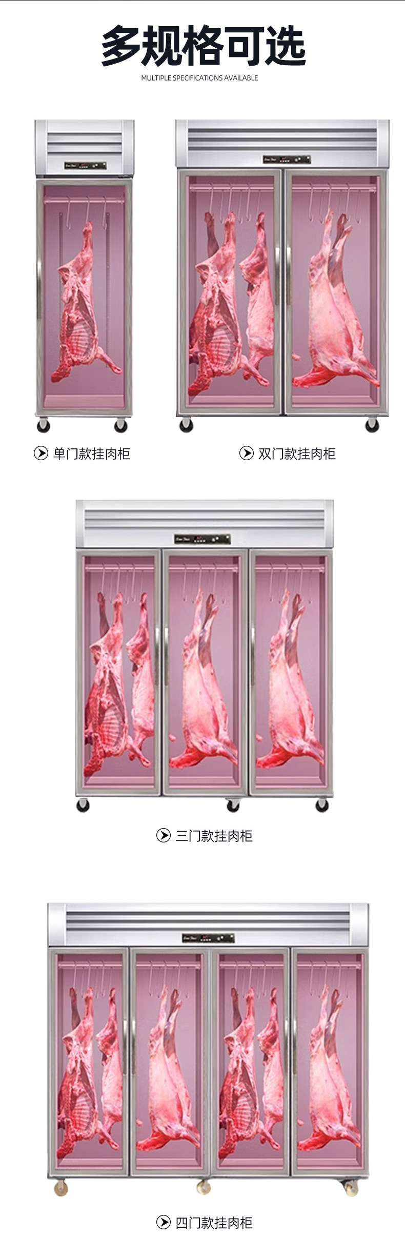 매달린 고기 캐비닛 상업용 대용량 수직 돼지 고기, 쇠고기 및 양고기 냉장 냉동 및 냉동 신선한 보관 디스플레이 캐비닛 신선한 고기 교수형 고기 캐비닛