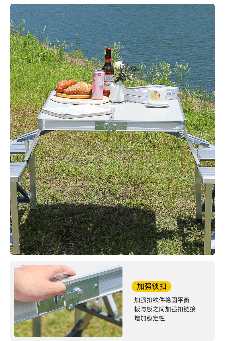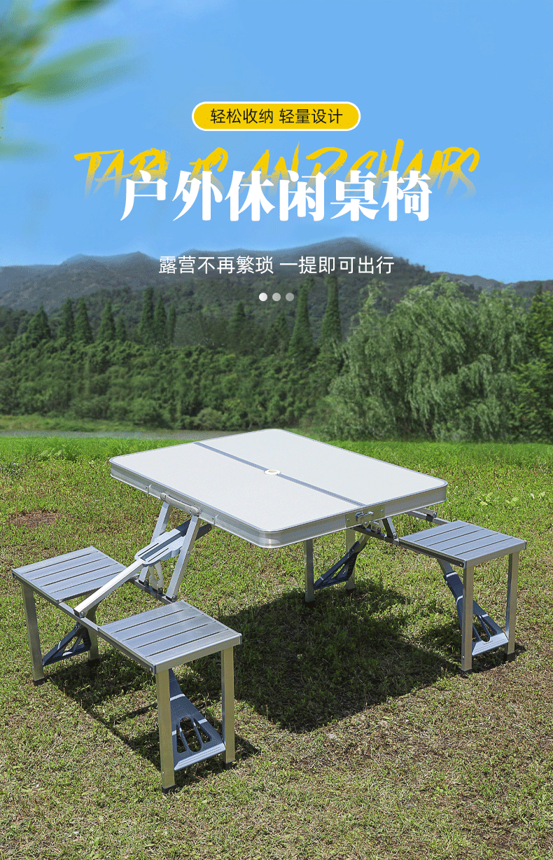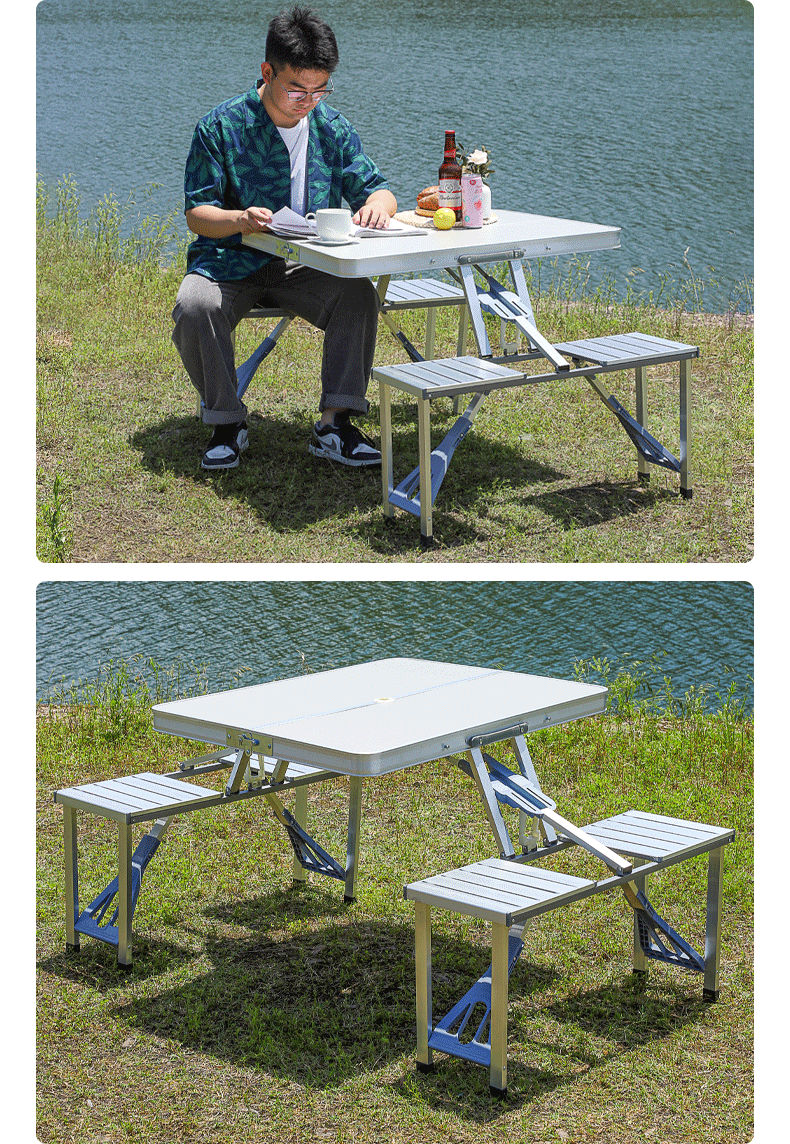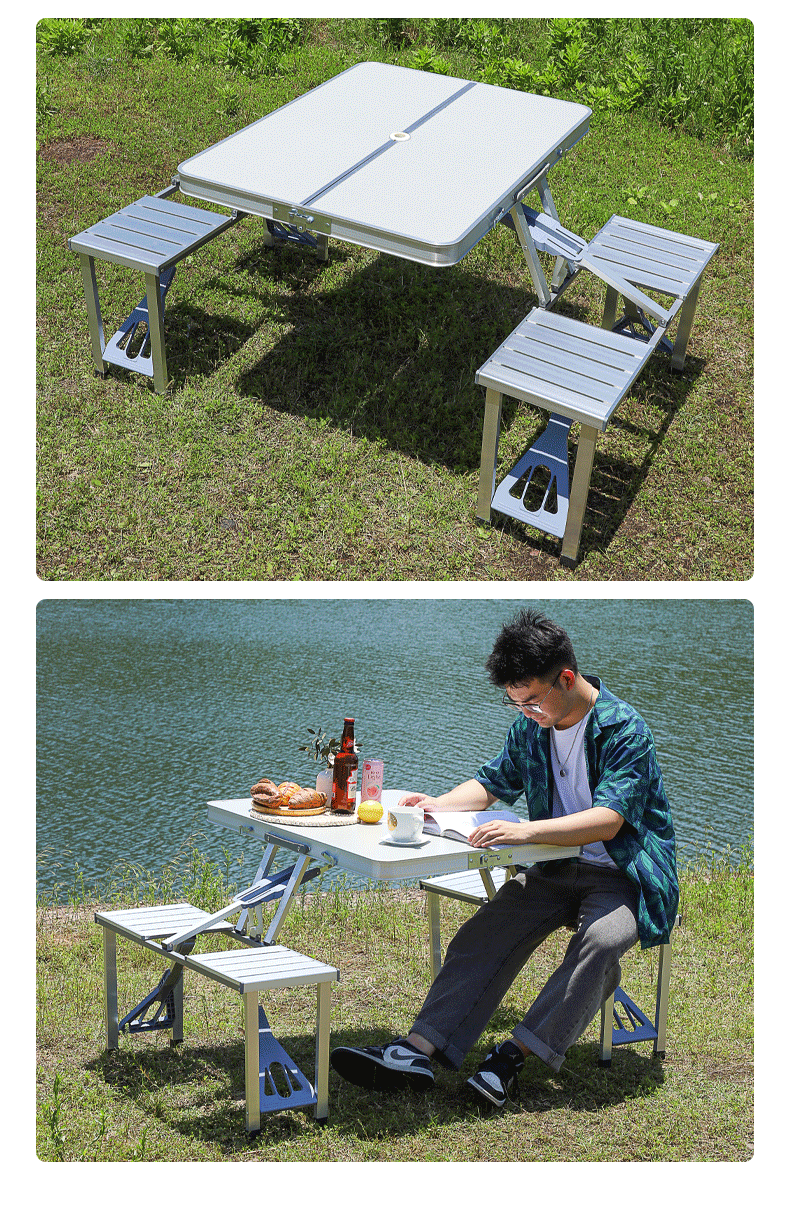 대외 무역 야외 캠핑 알루미늄 합금 접이식 식탁과 의자 결합 된 1 개의 테이블 4 개의 의자 휴대용 여행 접이식 테이블과 의자 도매스토어 가기