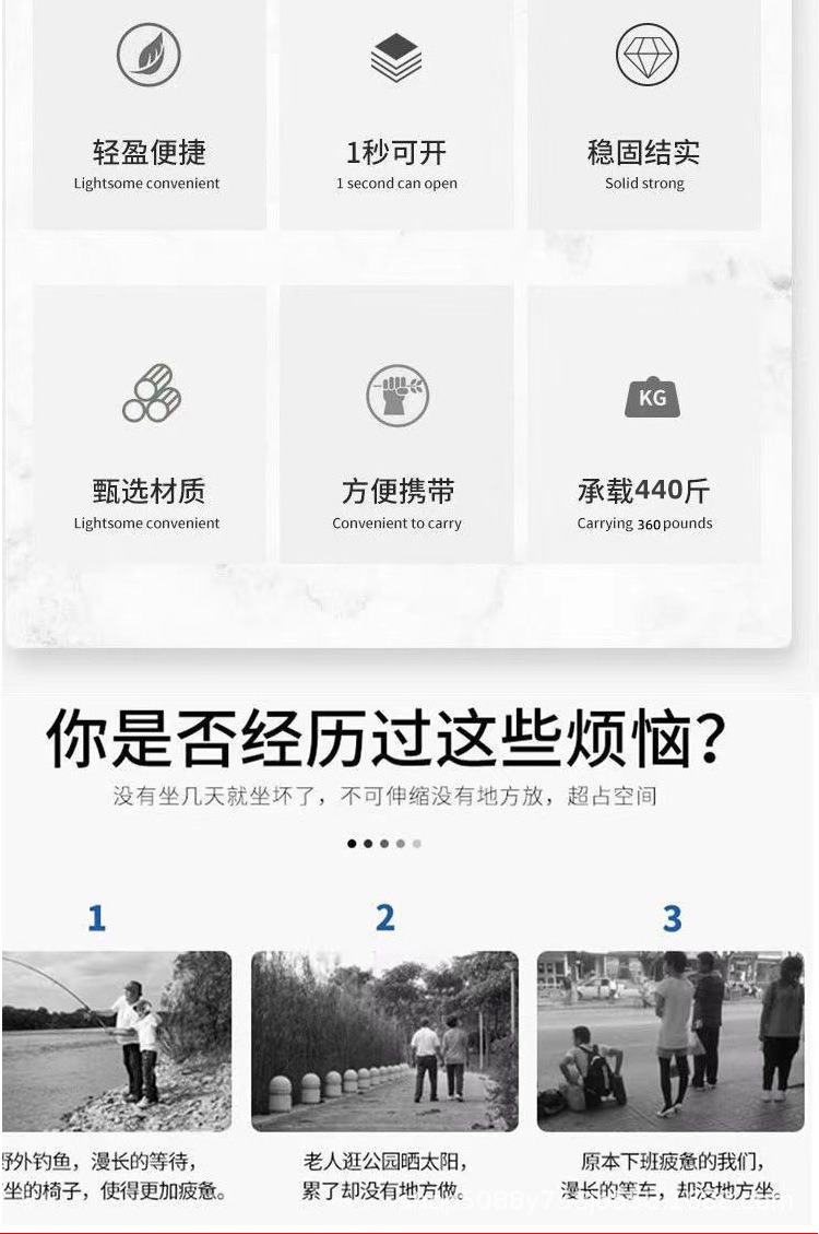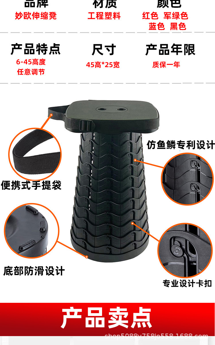 새로운 스타일 광장 의자 Miaoou 텔레스코픽 폴딩 의자 휴대용 조절 가능한 야외 낚시 기차 의자 작은 Mazar 망원경스토어 가기