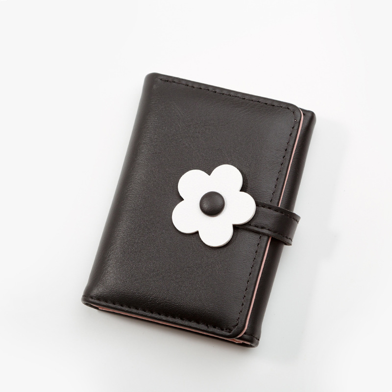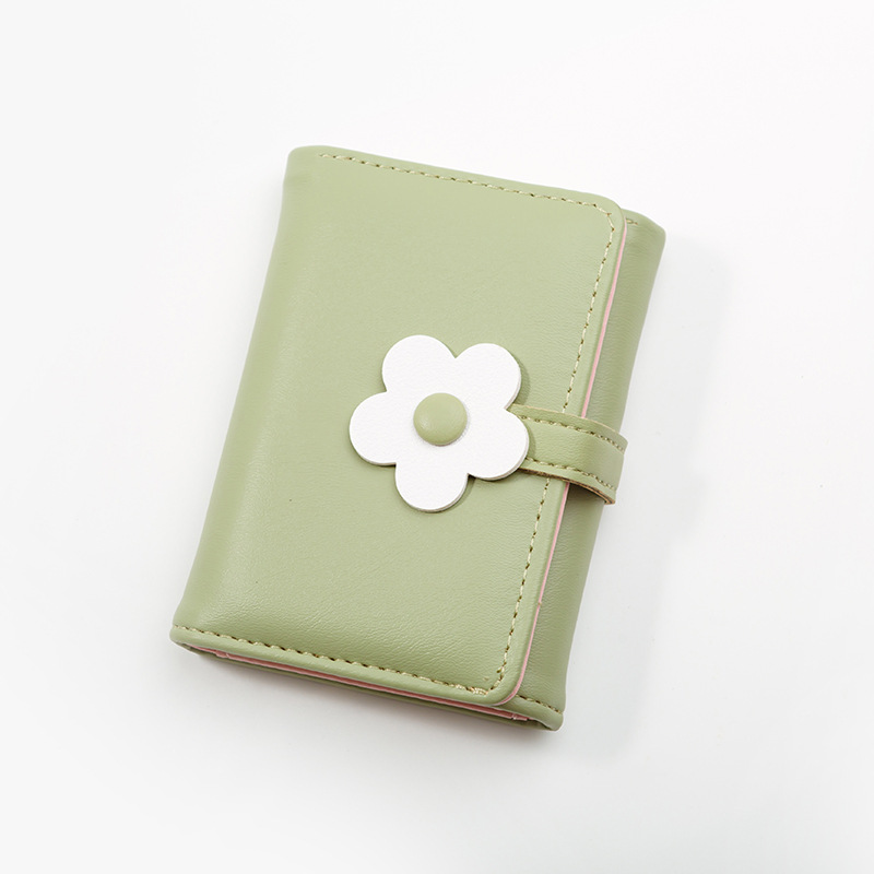 2024 새로운 Ins 간단한 귀여운 작은 꽃 학생 지갑 한국 스타일 유행 짧은 3 배 여성 PU 지갑