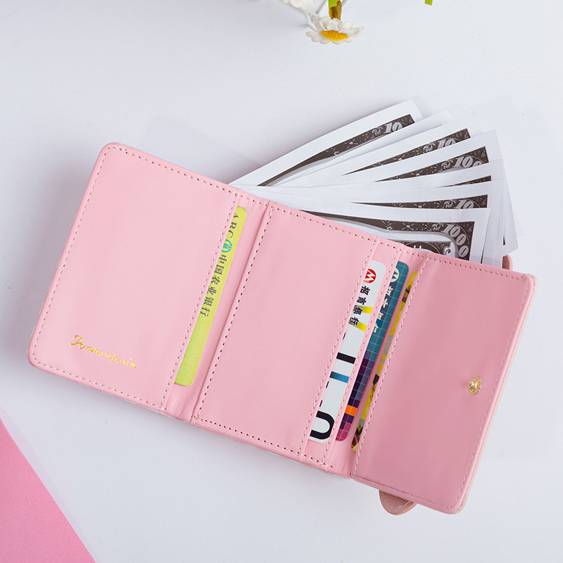 2024 새로운 Ins 간단한 귀여운 작은 꽃 학생 지갑 한국 스타일 유행 짧은 3 배 여성 PU 지갑스토어 가기
