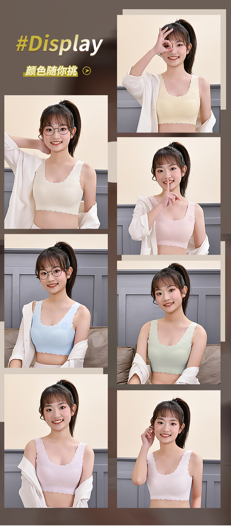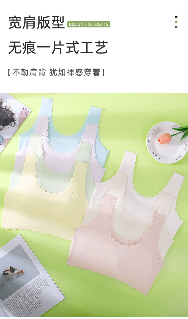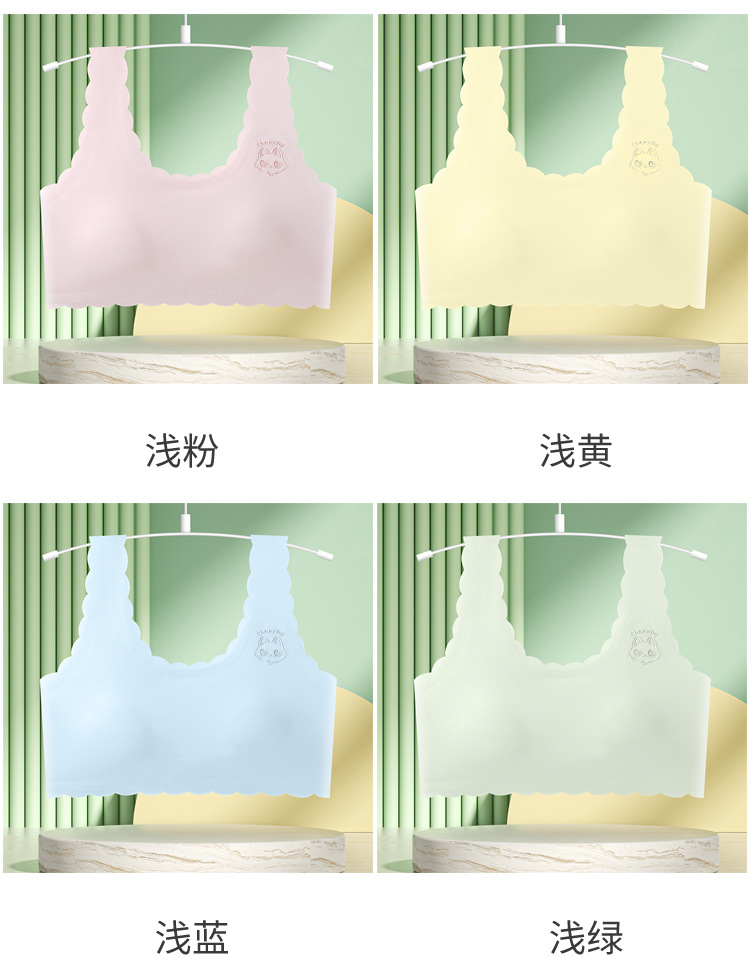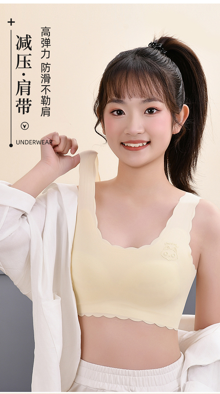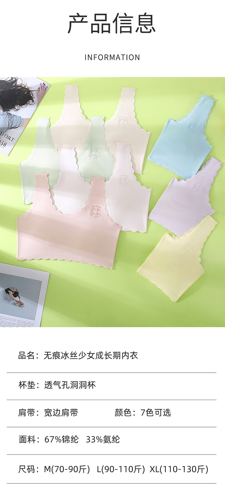 원피스 고정 컵 아이스 실크 원활한 소녀 브래지어 통기성 조끼 소녀 중학교 고등학생 편안한 속옷 여성스토어 가기