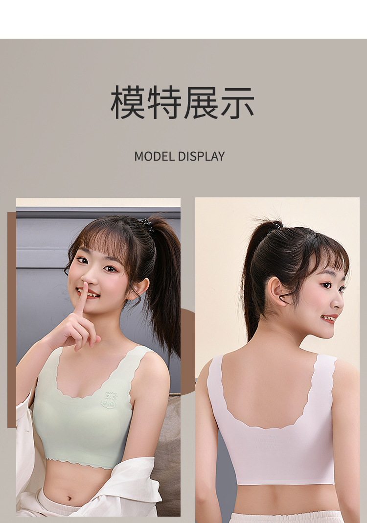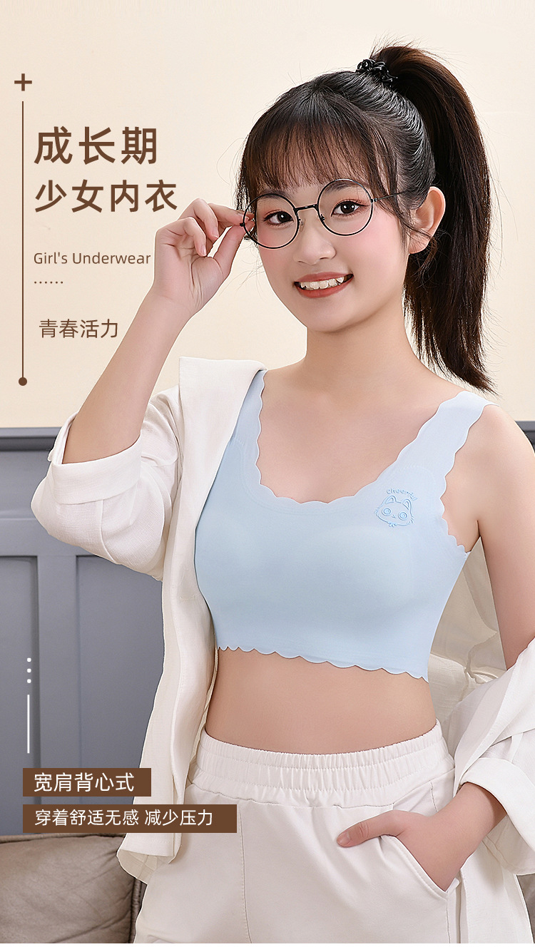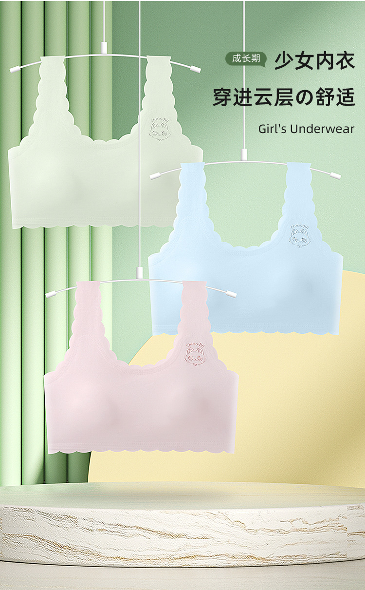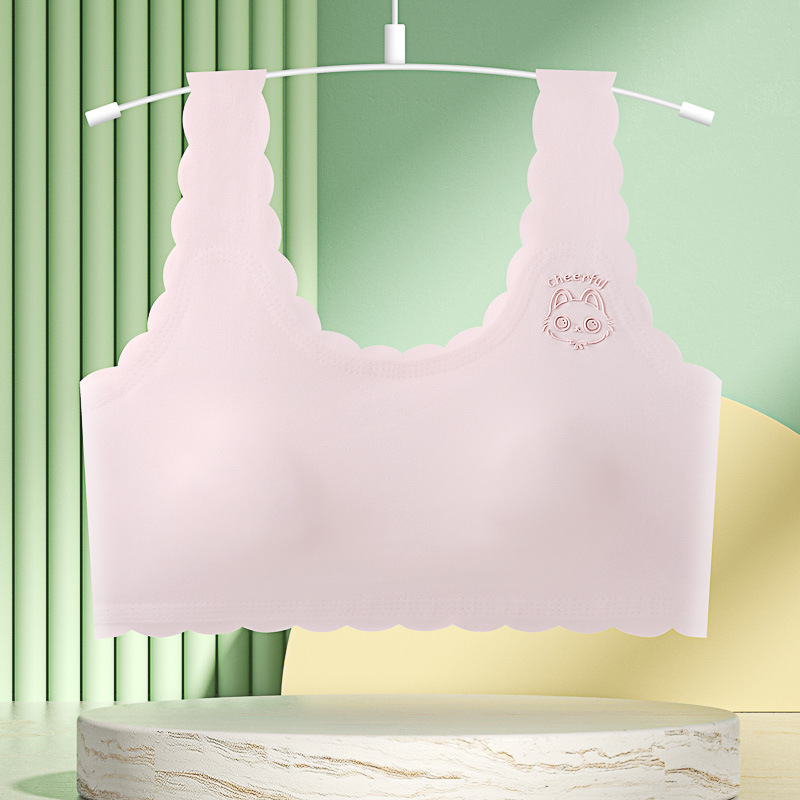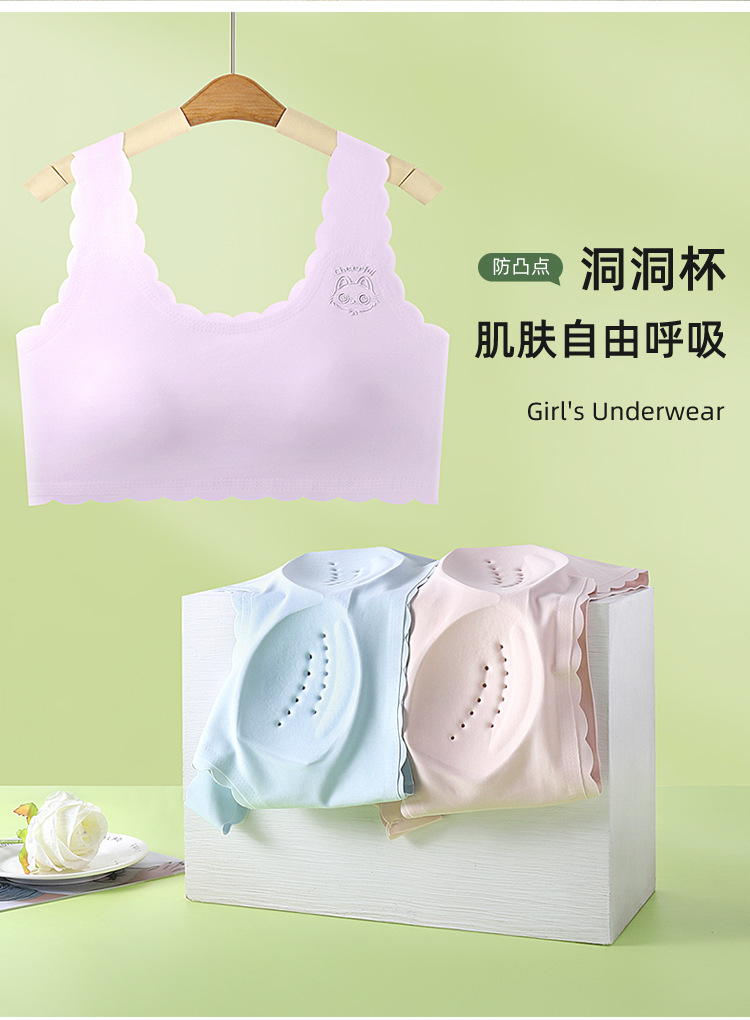 원피스 고정 컵 아이스 실크 원활한 소녀 브래지어 통기성 조끼 소녀 중학교 고등학생 편안한 속옷 여성스토어 가기