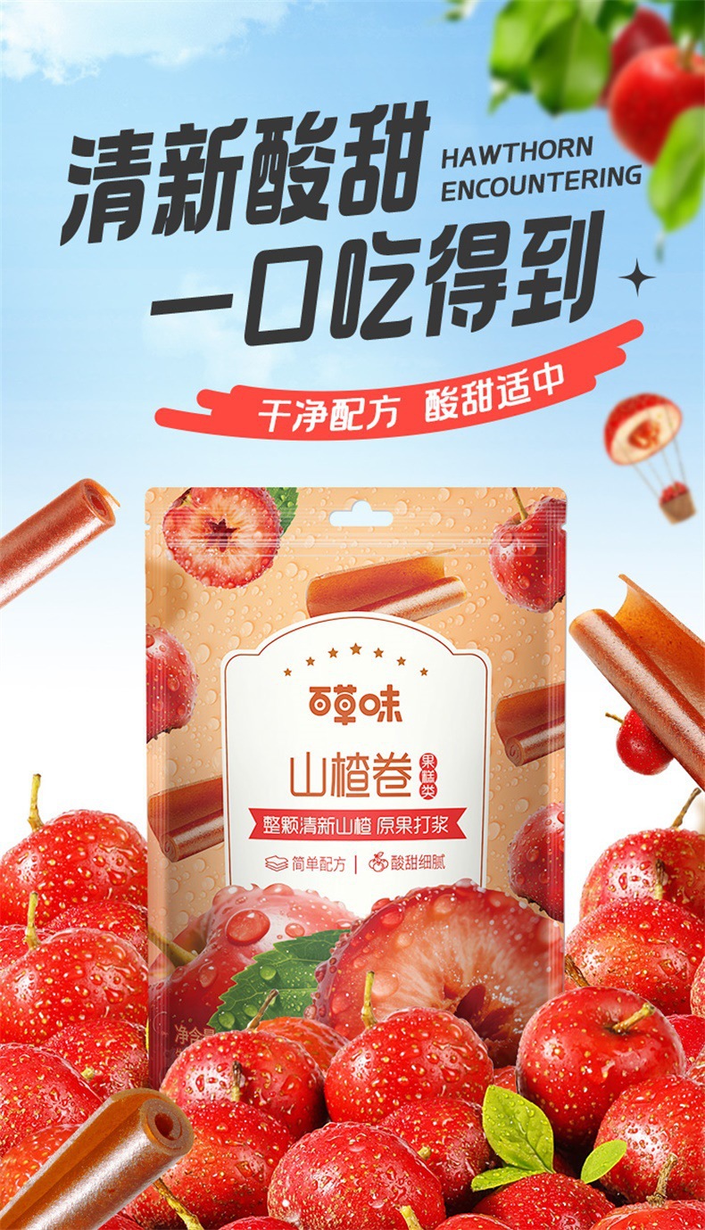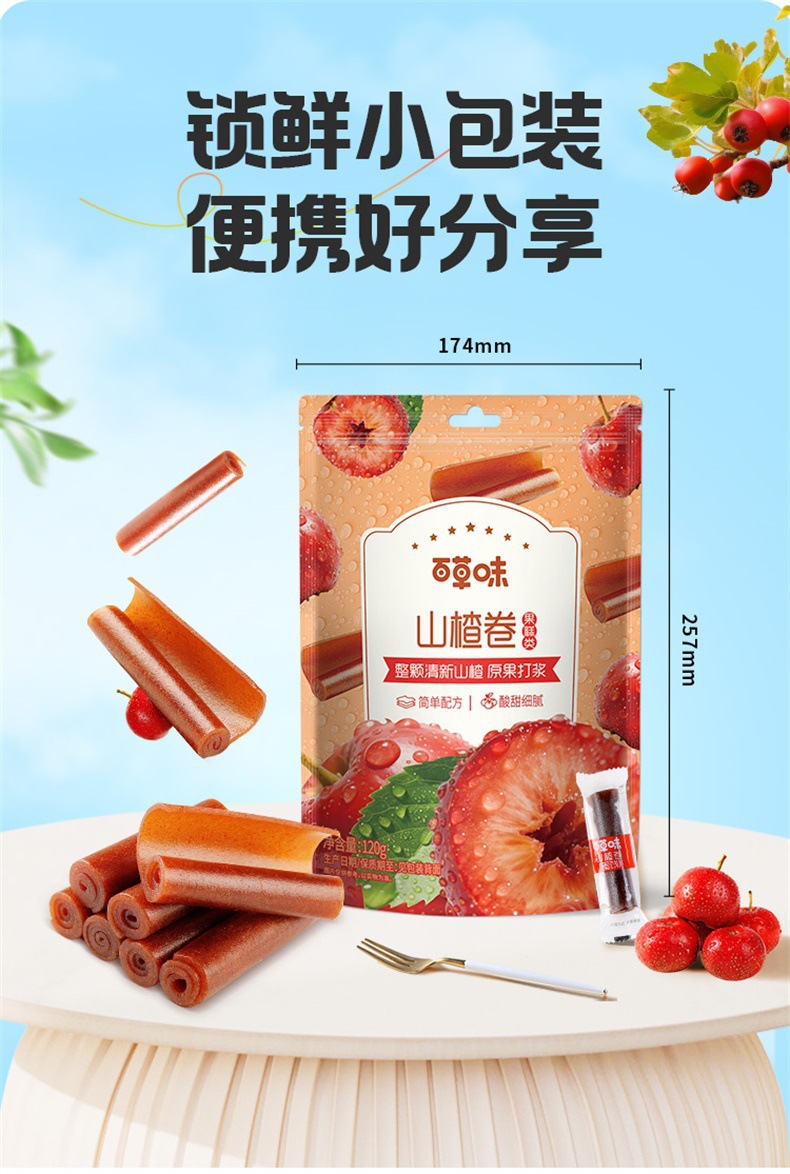 Baicaowei Hawthorn Roll 120g 상자 크기 60 패키지 스낵 과일 설탕에 절인 어린이 스낵 캐주얼 스낵 도매