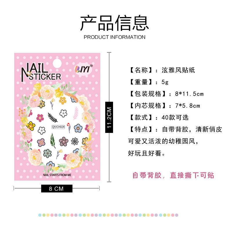 현야 스타일 어린이 성인 네일 스티커 Ins 귀여운 꽃 네일 스티커 딸기 오렌지 방수 네일 스티커