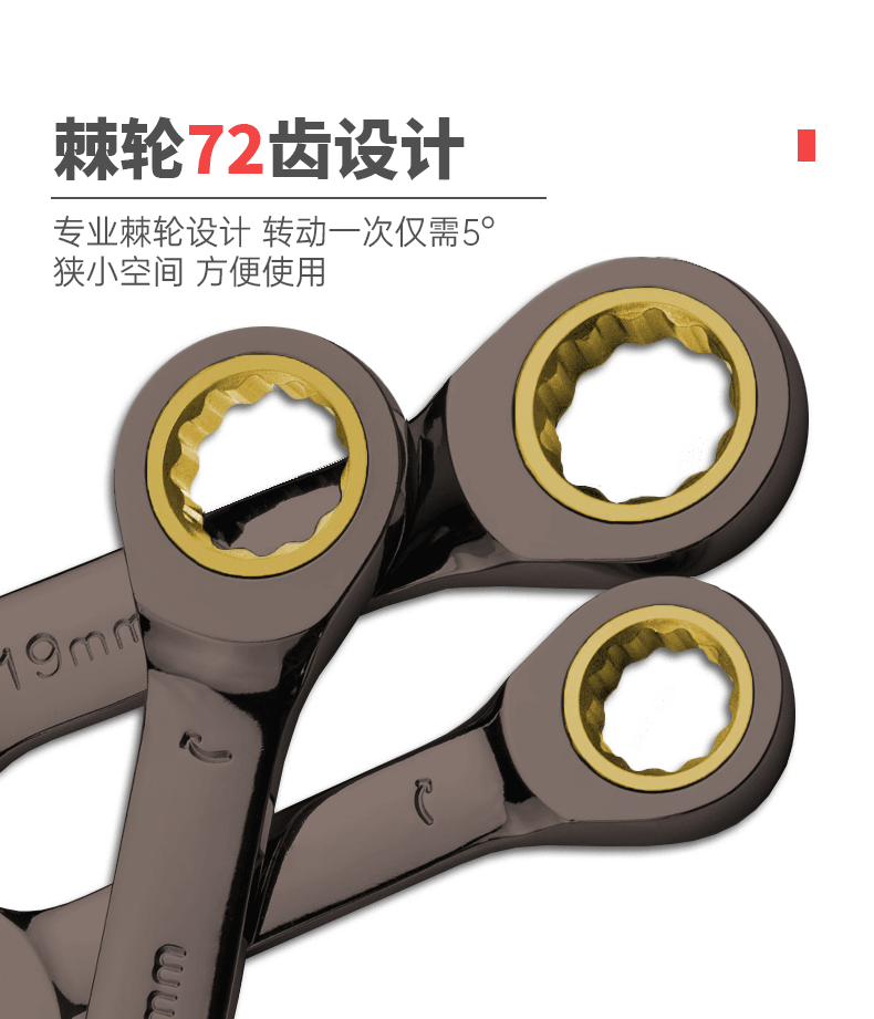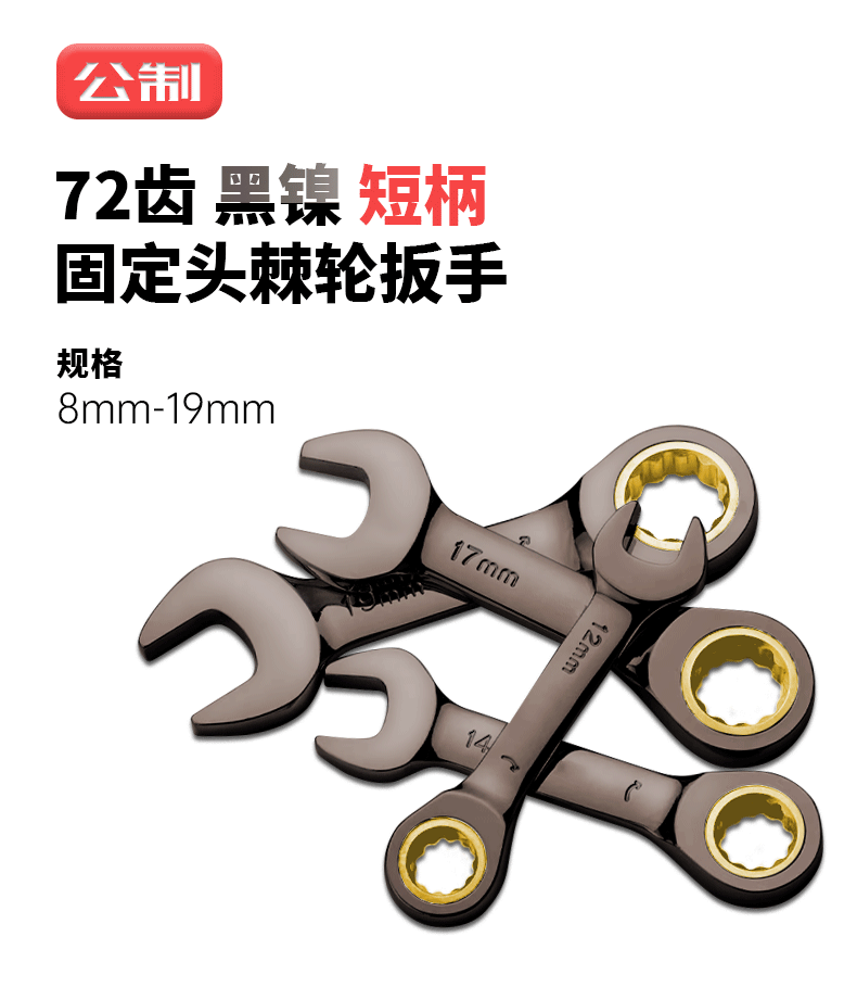 블랙 니켈 짧은 손잡이 고정 래칫 렌치 빠른 노동 절약 매화 이중 목적 메트릭 72 치아 8-19mm 미니 렌치